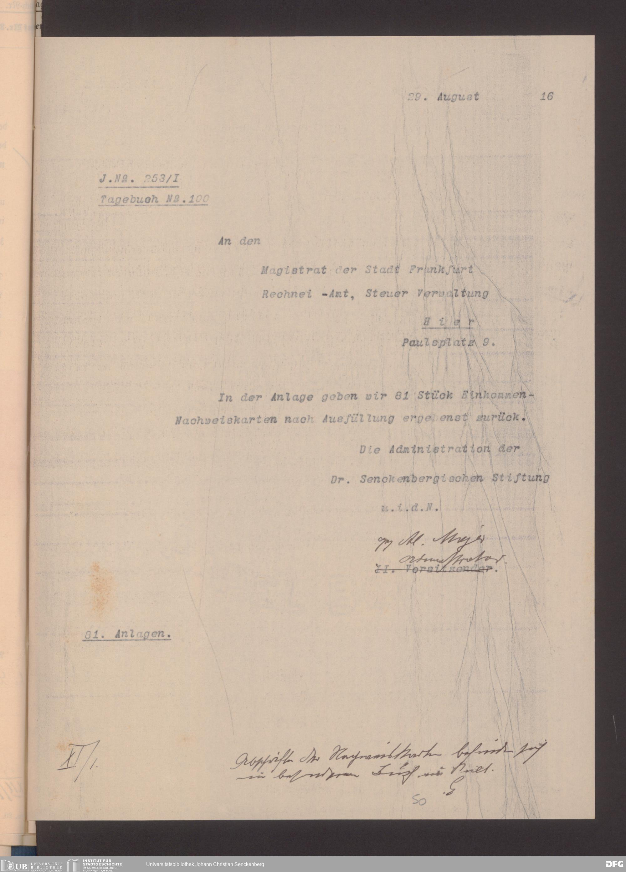 V48 Dr. Senckenbergische Stiftung, 491 - Rechneiamt