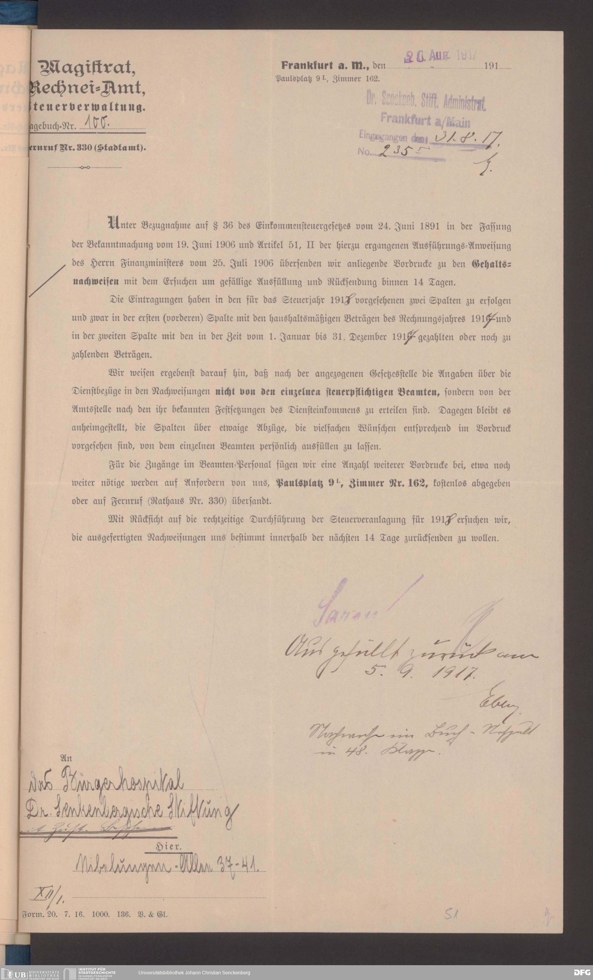 V48 Dr. Senckenbergische Stiftung, 491 - Rechneiamt