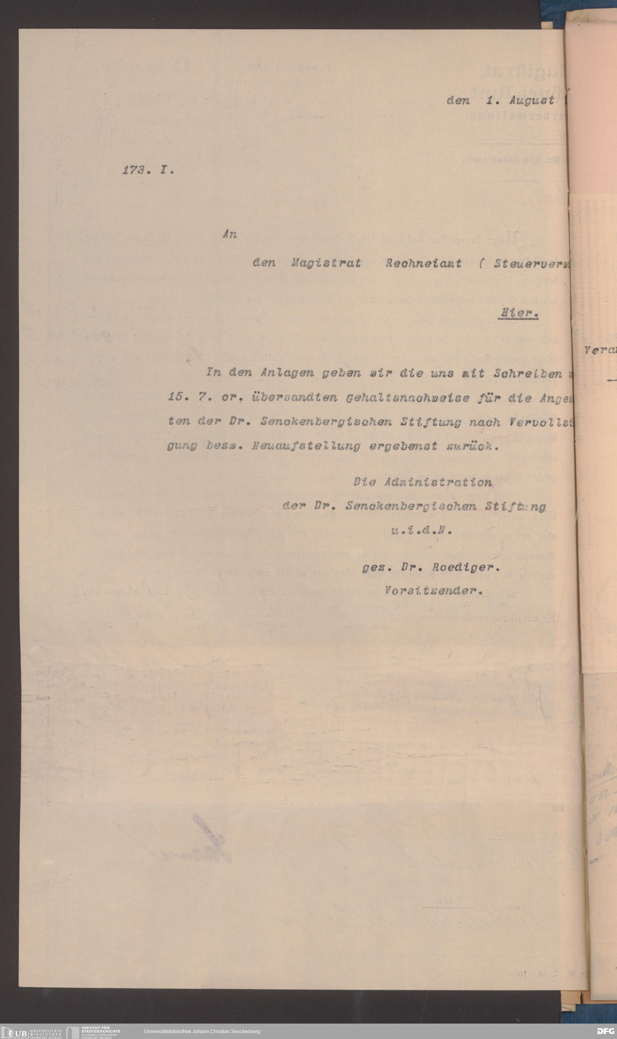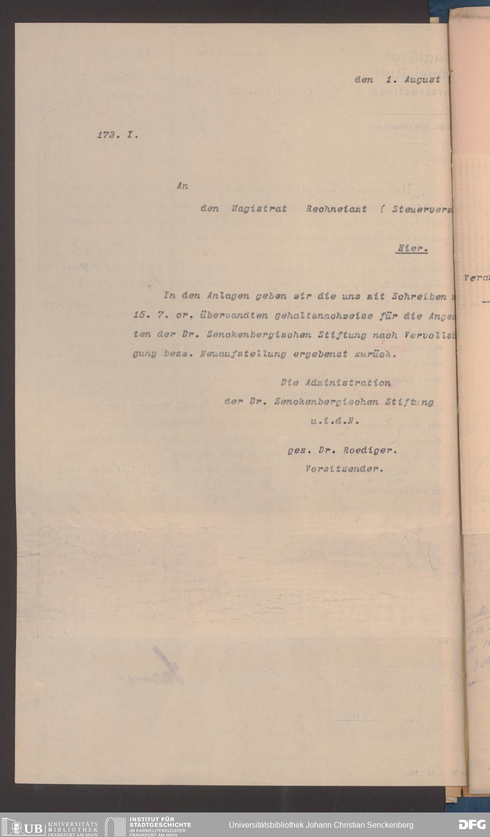 V48 Dr. Senckenbergische Stiftung, 491 - Rechneiamt