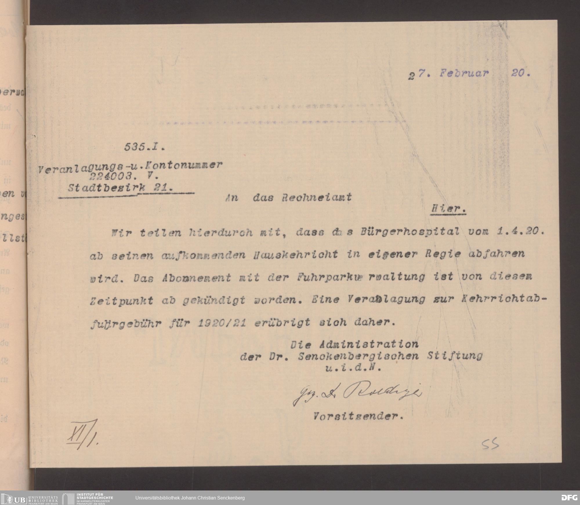 V48 Dr. Senckenbergische Stiftung, 491 - Rechneiamt