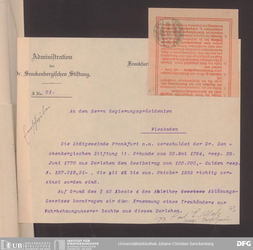 V48 Dr. Senckenbergische Stiftung, 491 - Rechneiamt