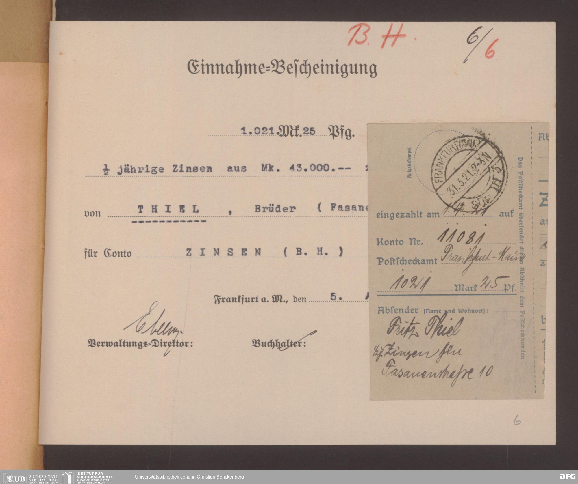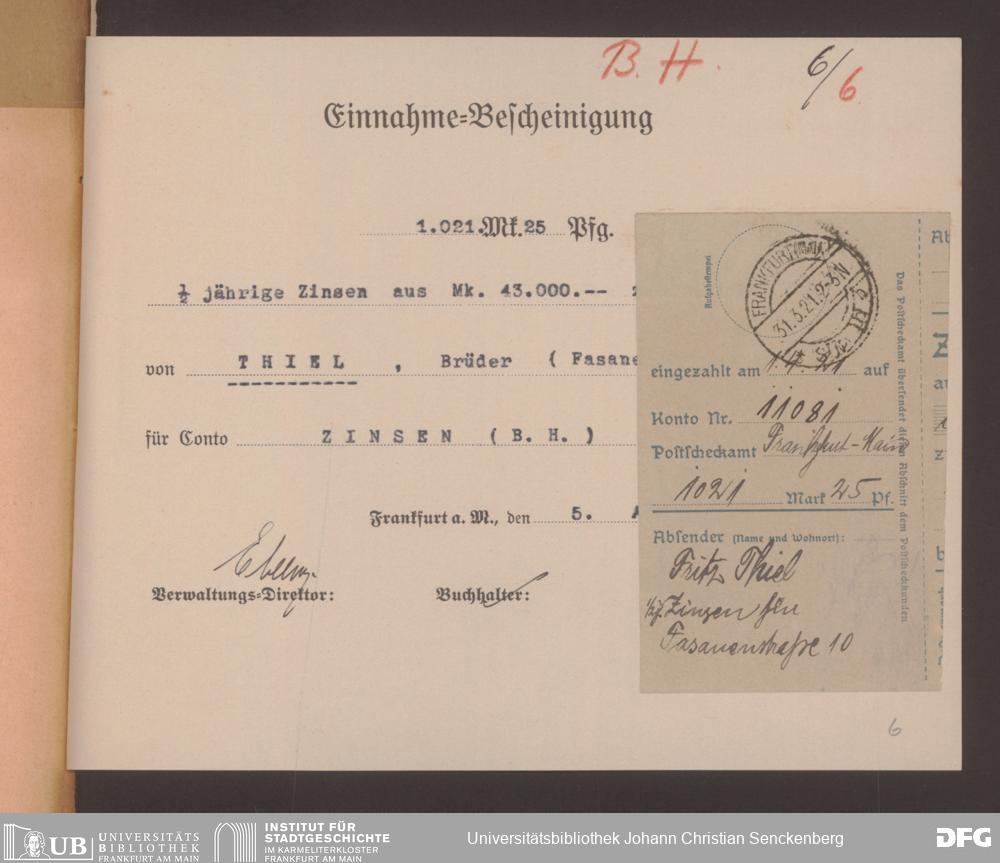 V48 Dr. Senckenbergische Stiftung, 498 - Belege über Einnahmen der Stiftungsverwaltung