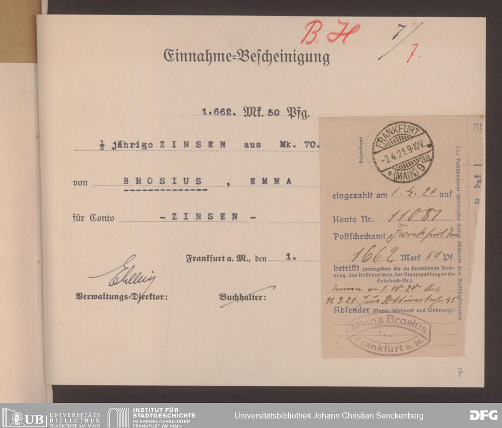 V48 Dr. Senckenbergische Stiftung, 498 - Belege über Einnahmen der Stiftungsverwaltung