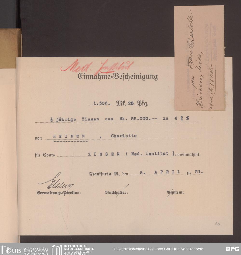 V48 Dr. Senckenbergische Stiftung, 498 - Belege über Einnahmen der Stiftungsverwaltung