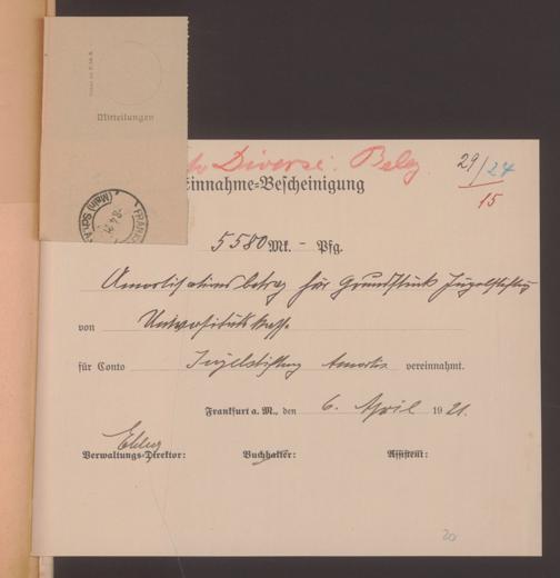 V48 Dr. Senckenbergische Stiftung, 498 - Belege über Einnahmen der Stiftungsverwaltung