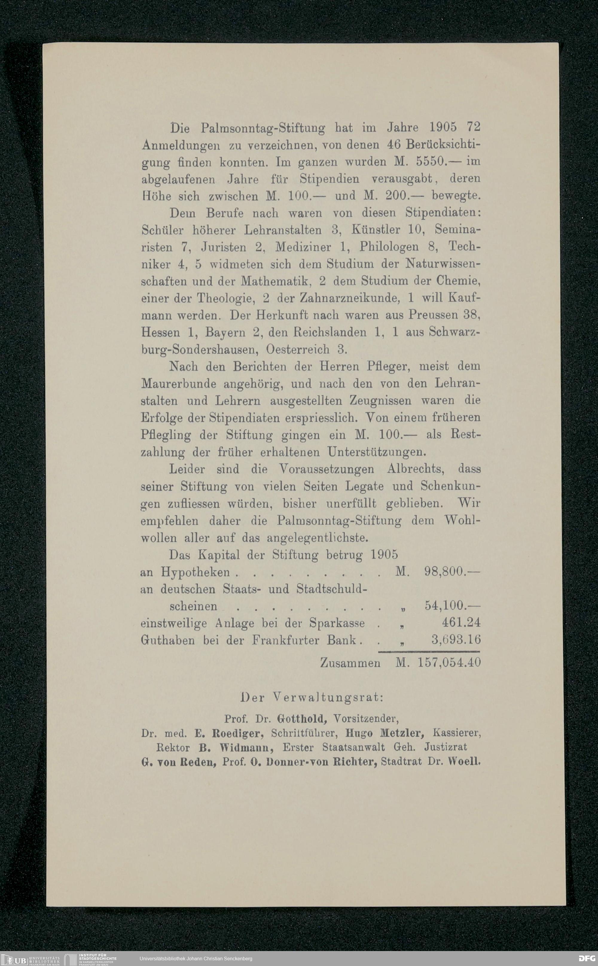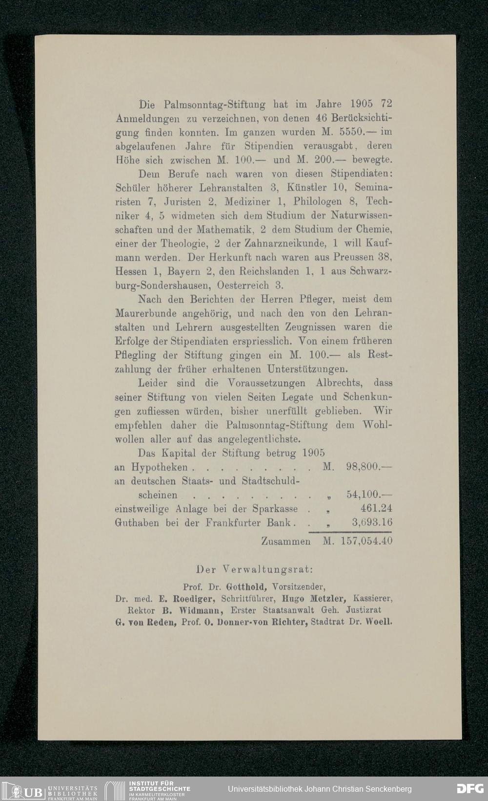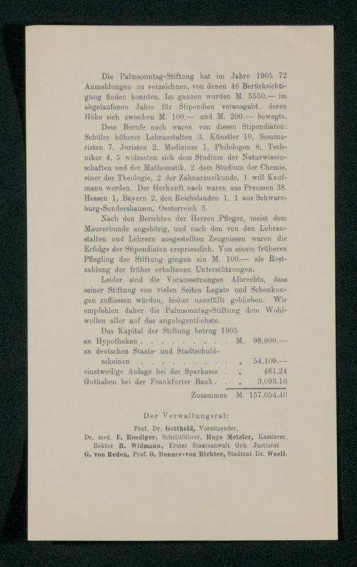 V48 Dr. Senckenbergische Stiftung, 517 - Berichte des Verwaltungsrates über Aufgabe und Tätigkeit der Palmsonntag-Stiftung 1890-1916