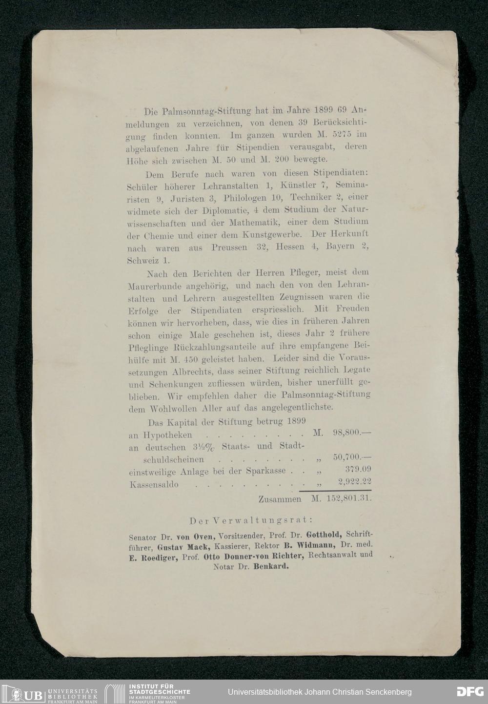 V48 Dr. Senckenbergische Stiftung, 517 - Berichte des Verwaltungsrates über Aufgabe und Tätigkeit der Palmsonntag-Stiftung 1890-1916