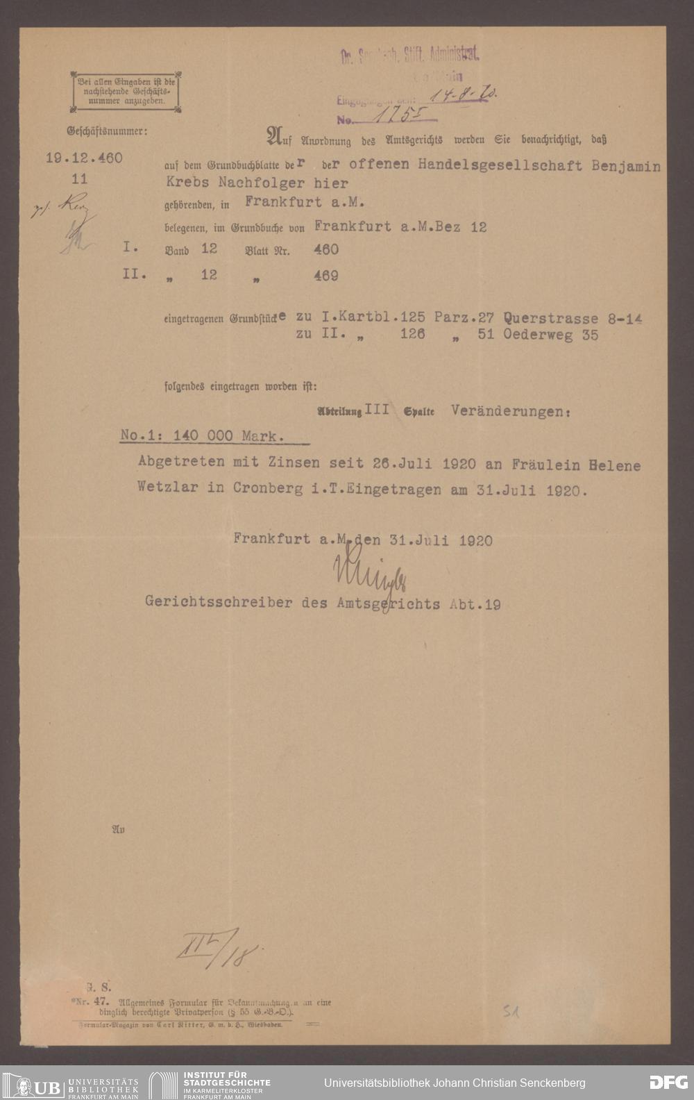 V48 Dr. Senckenbergische Stiftung, 527 - Insatz Poppelbaum