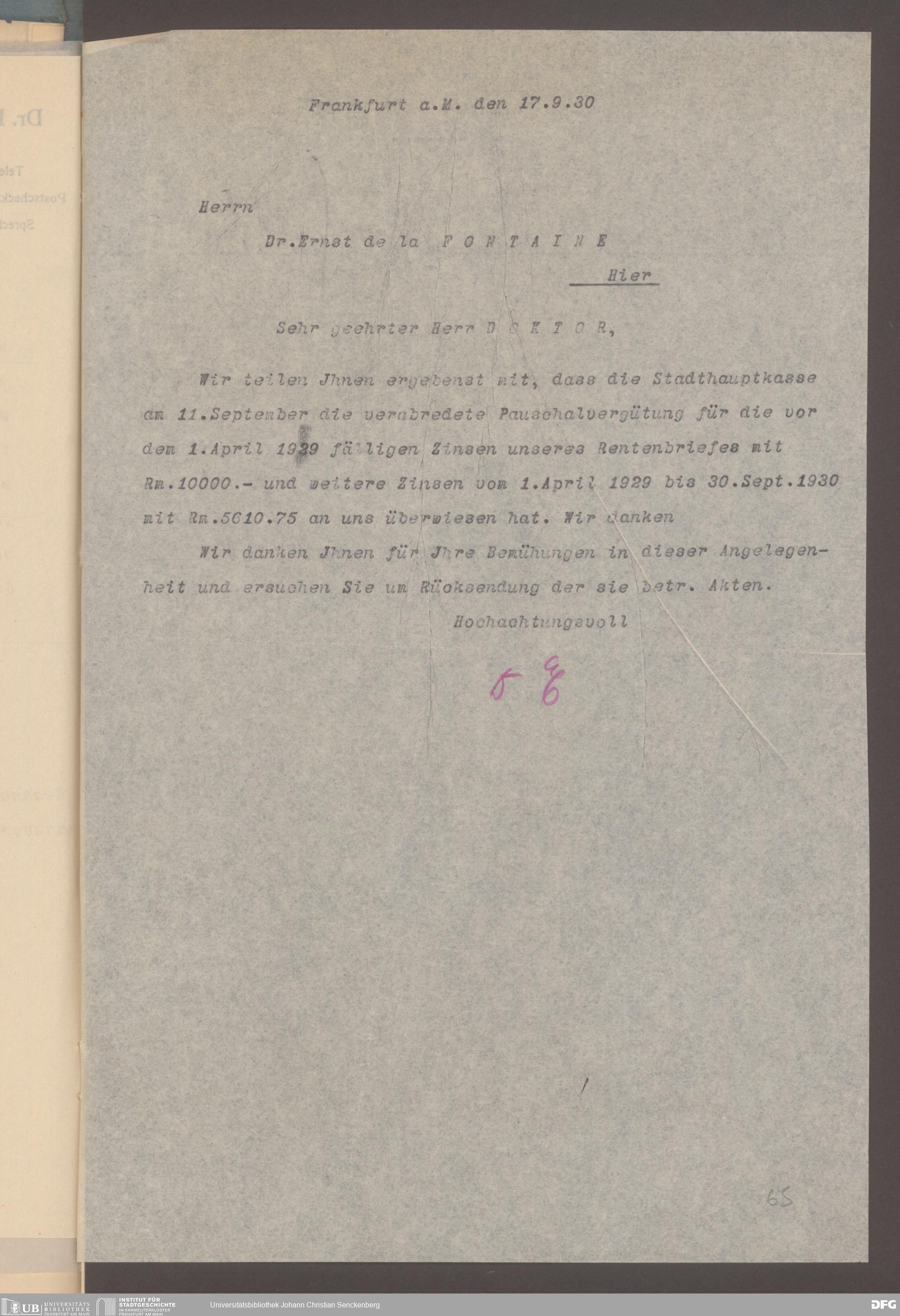 V48 Dr. Senckenbergische Stiftung, 529 - Umgang mit dem von Johann Christian Senckenberg im Jahr 1763 beim Rechneiamt hinterlegten Kapital