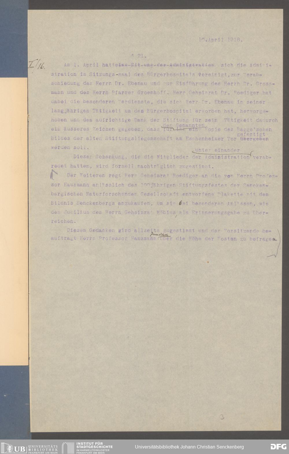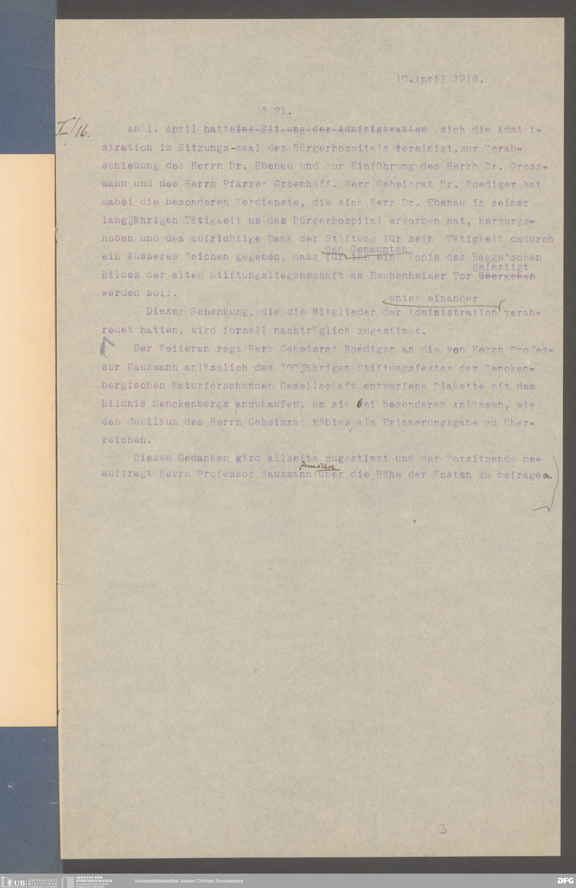 V48 Dr. Senckenbergische Stiftung, 536 - Entwurf und Verleihung der Senckenberg-Plakette