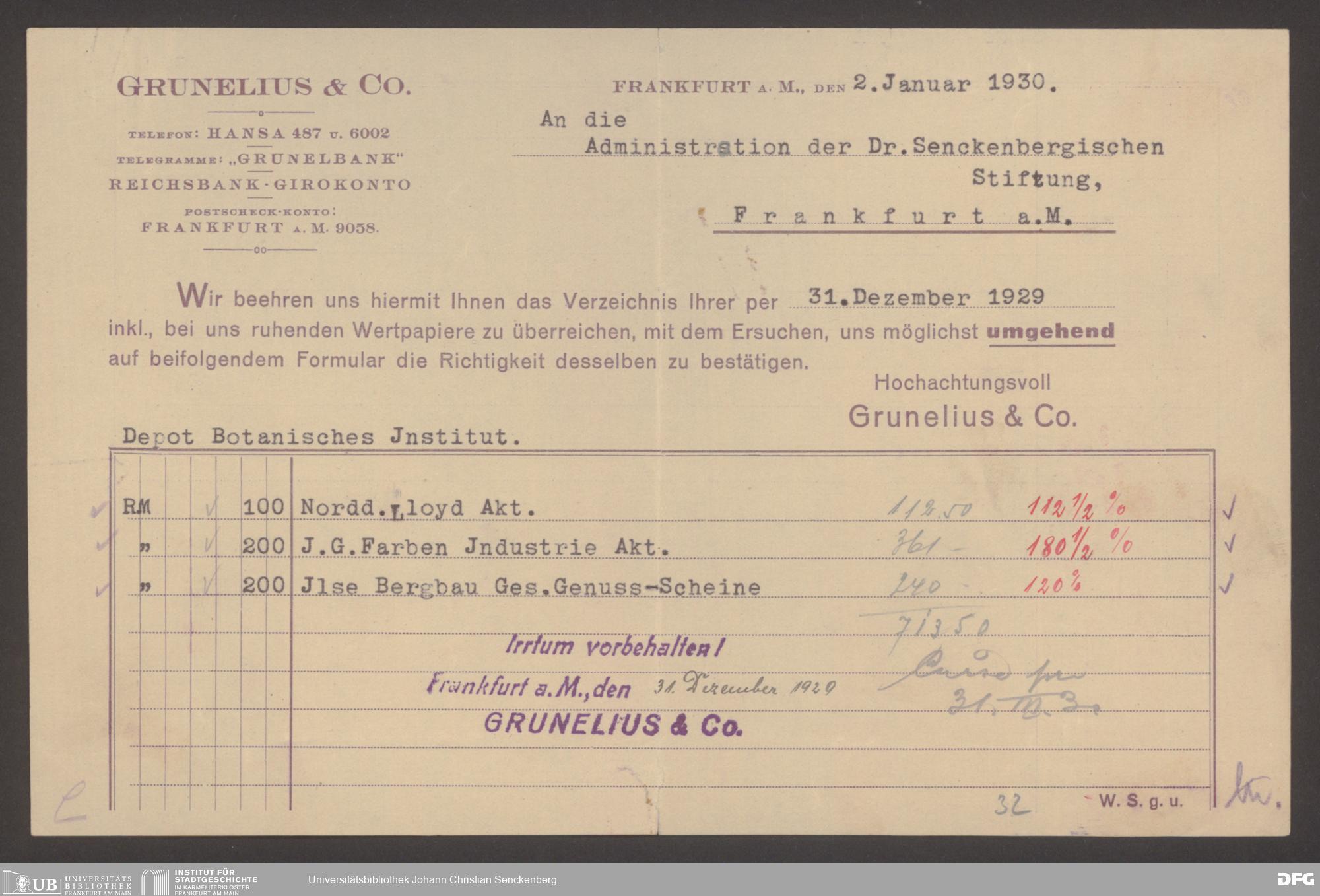 V48 Dr. Senckenbergische Stiftung, 545 - Aktien und Wertpapiere