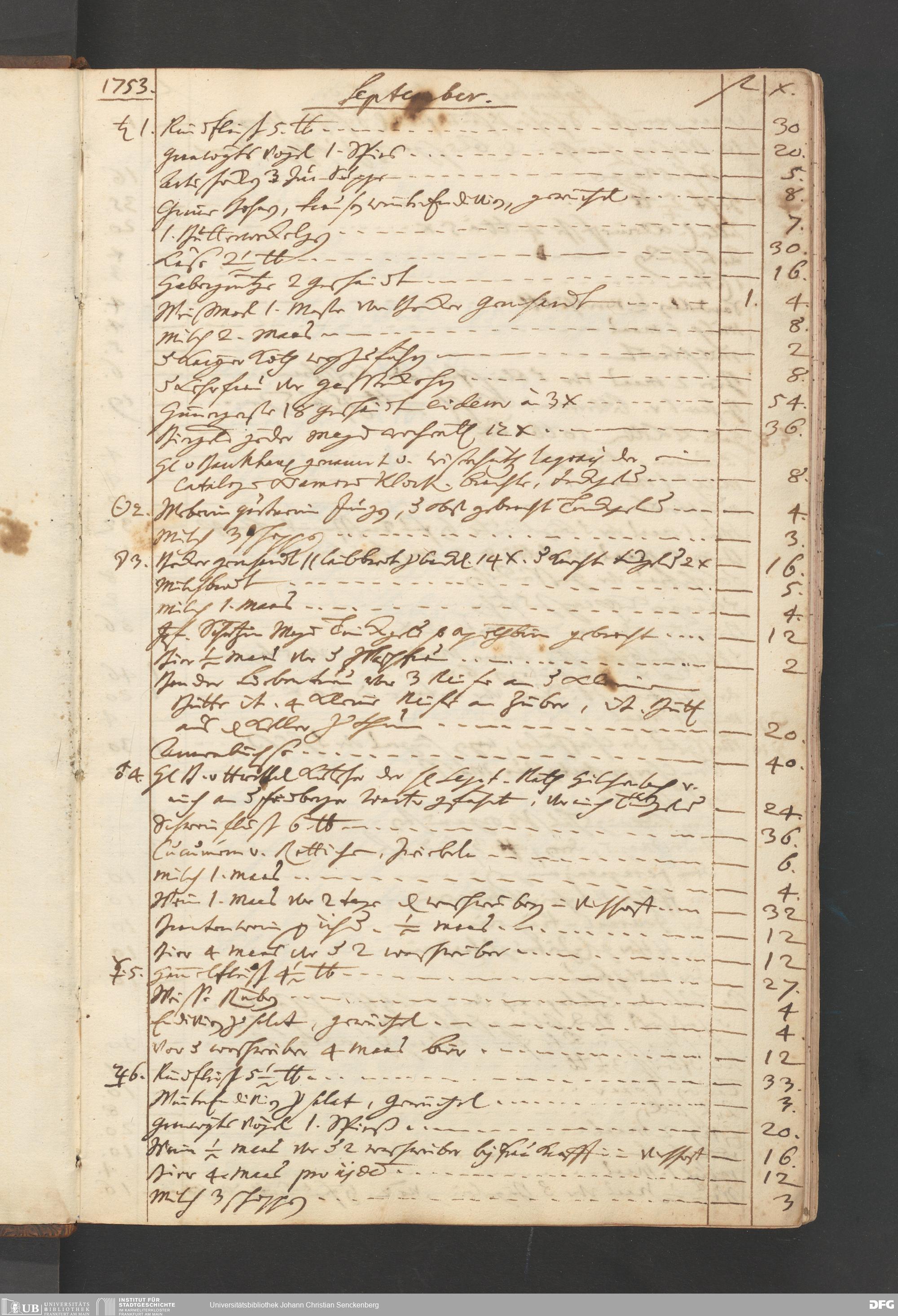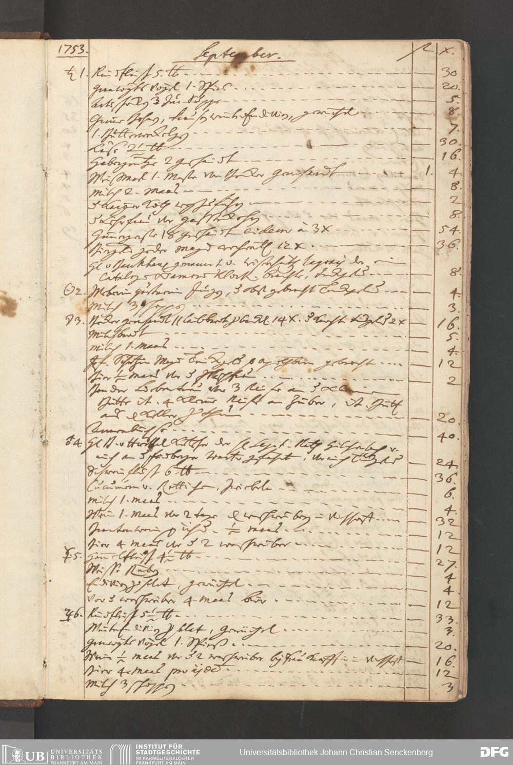 V48 Dr. Senckenbergische Stiftung, B49 - ... Haushaltsbücher von Johann Christian Senckenberg, Bd. 2