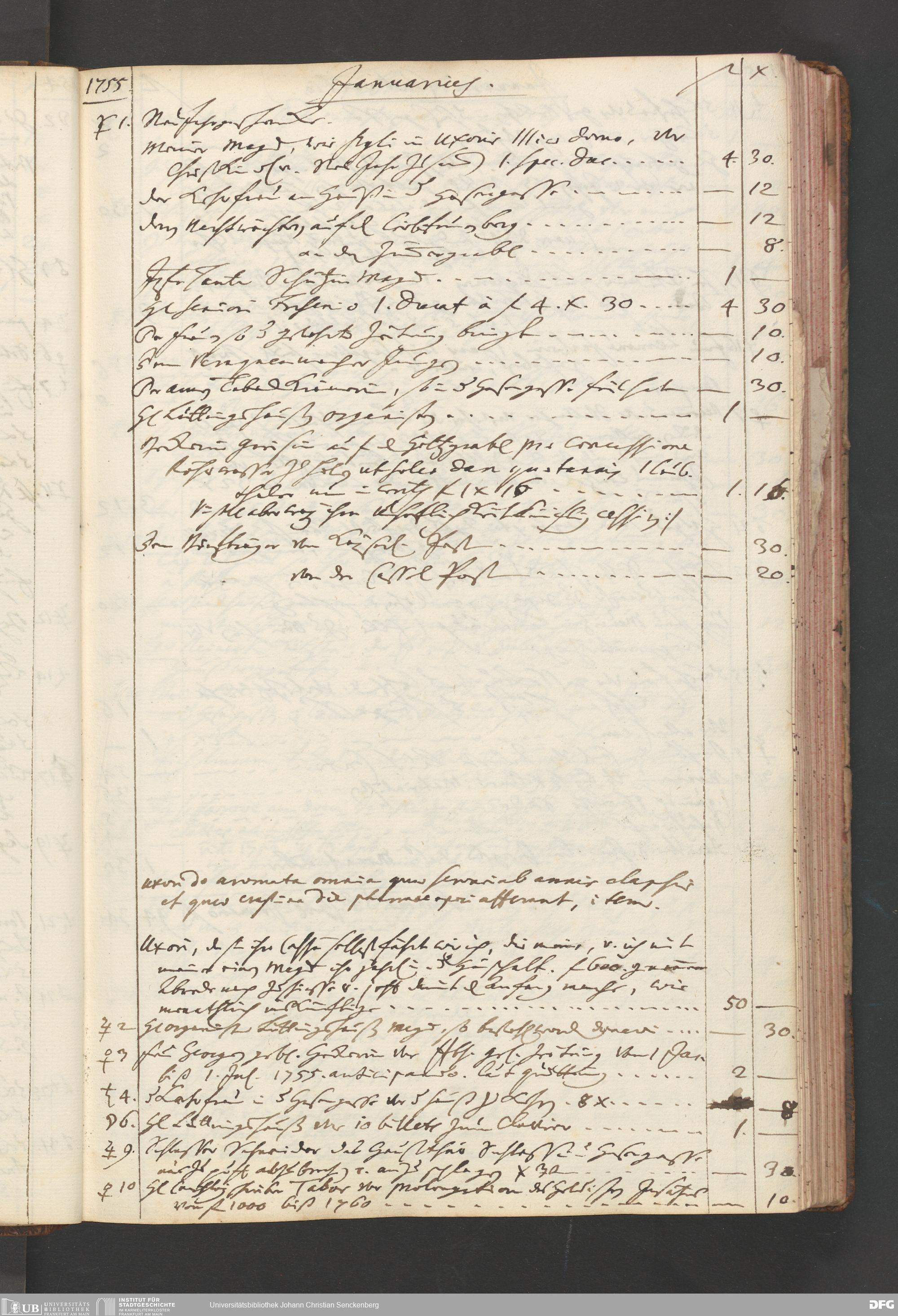 V48 Dr. Senckenbergische Stiftung, B49 - ... Haushaltsbücher von Johann Christian Senckenberg, Bd. 2