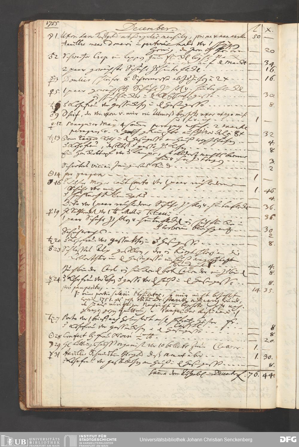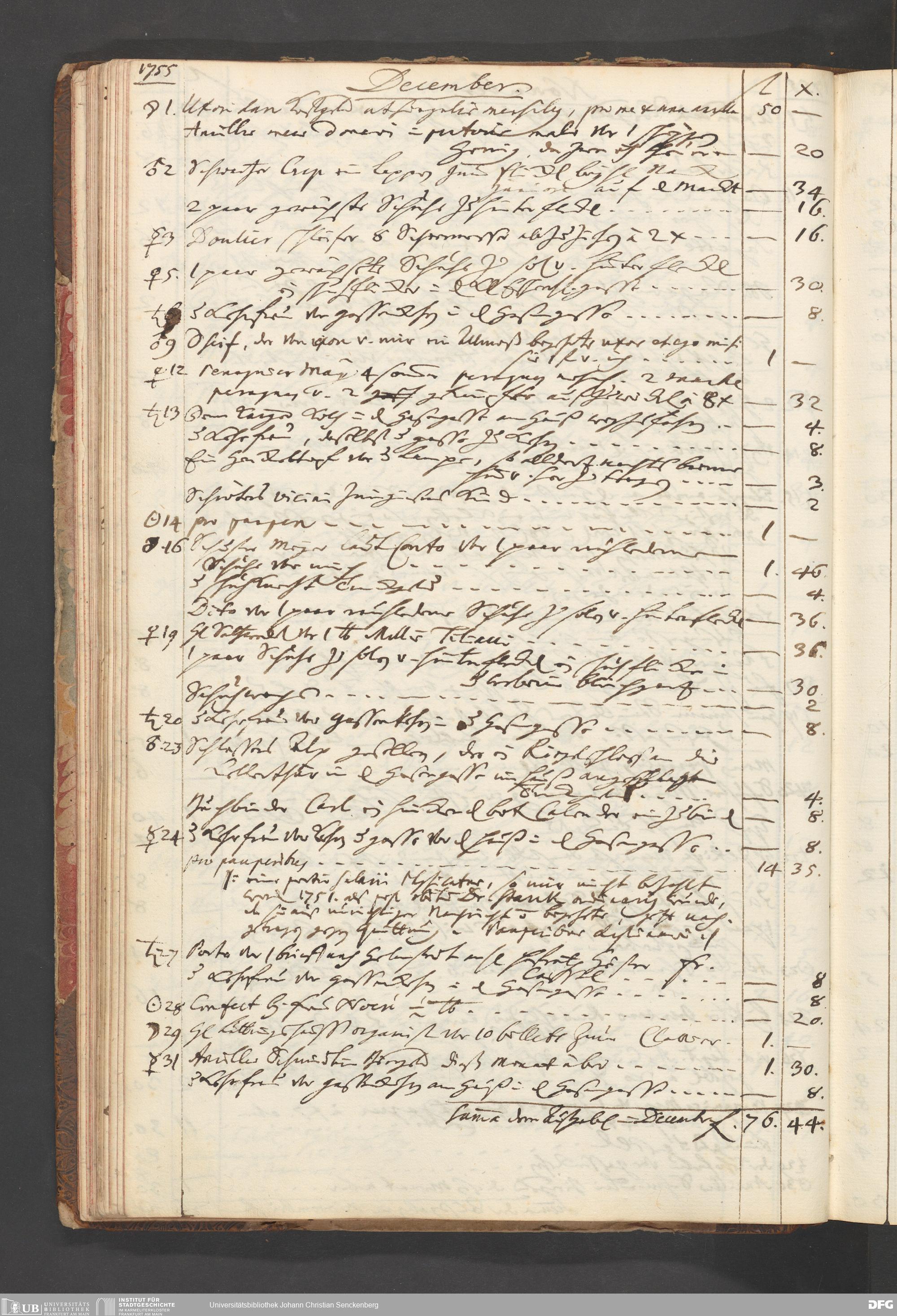 V48 Dr. Senckenbergische Stiftung, B49 - ... Haushaltsbücher von Johann Christian Senckenberg, Bd. 2