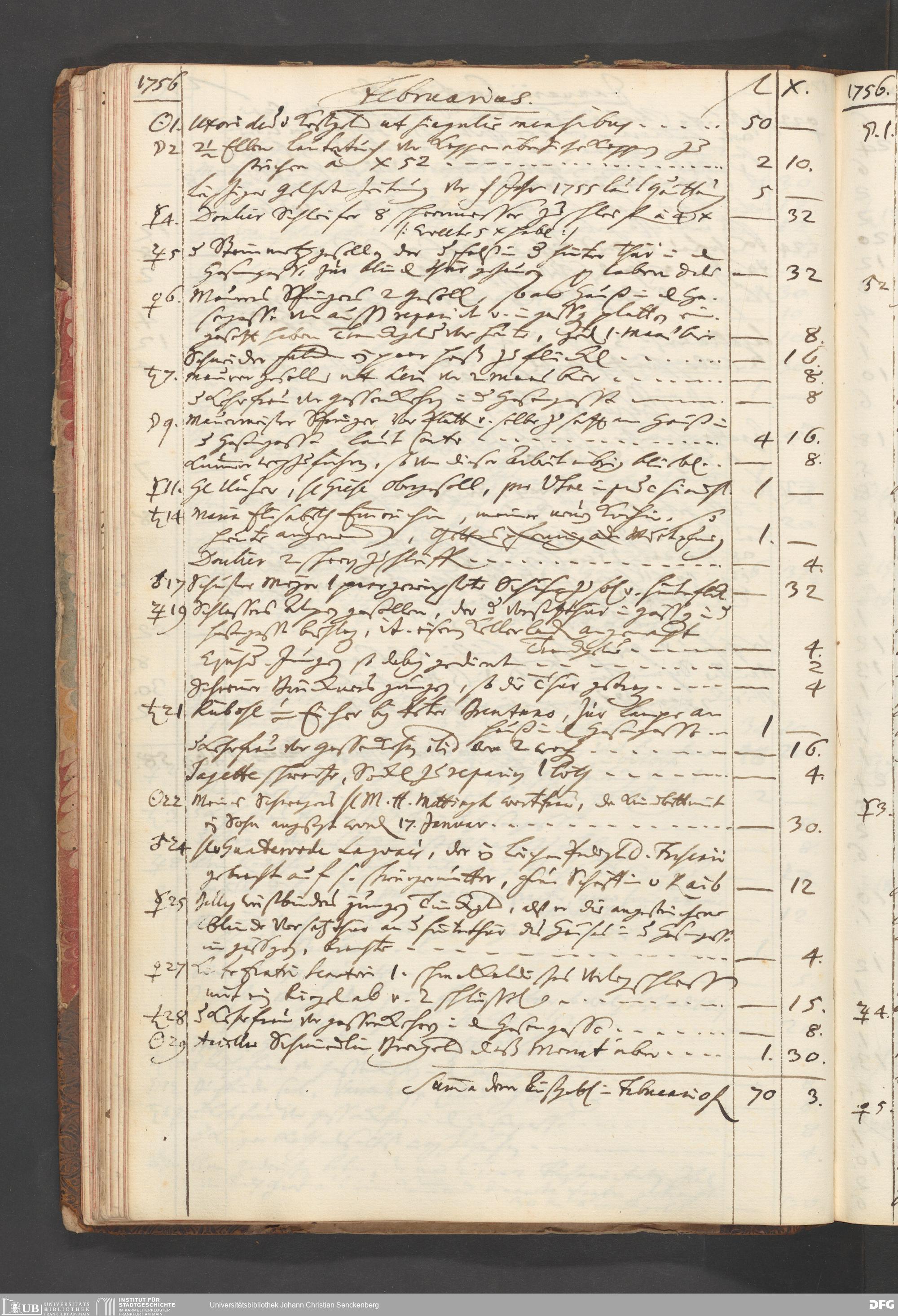 V48 Dr. Senckenbergische Stiftung, B49 - ... Haushaltsbücher von Johann Christian Senckenberg, Bd. 2