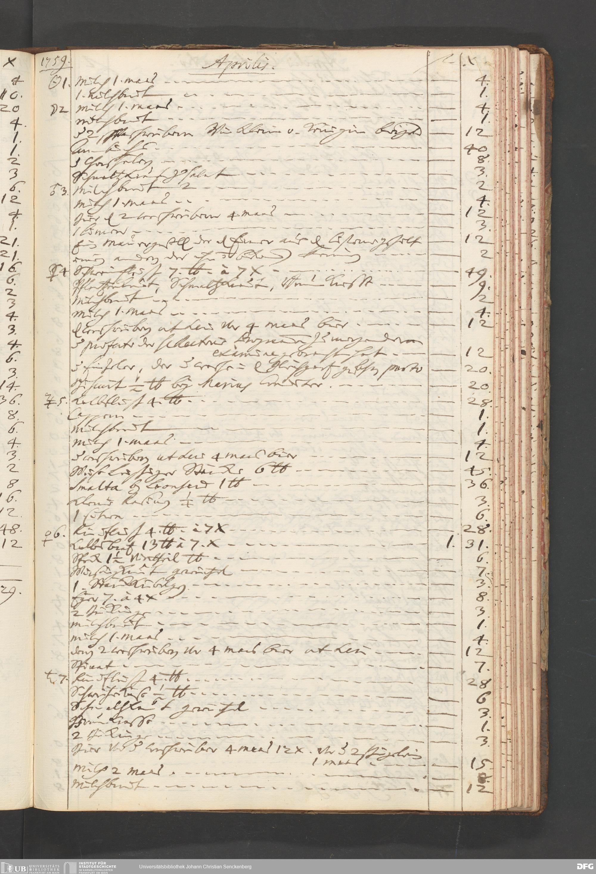 V48 Dr. Senckenbergische Stiftung, B49 - ... Haushaltsbücher von Johann Christian Senckenberg, Bd. 2