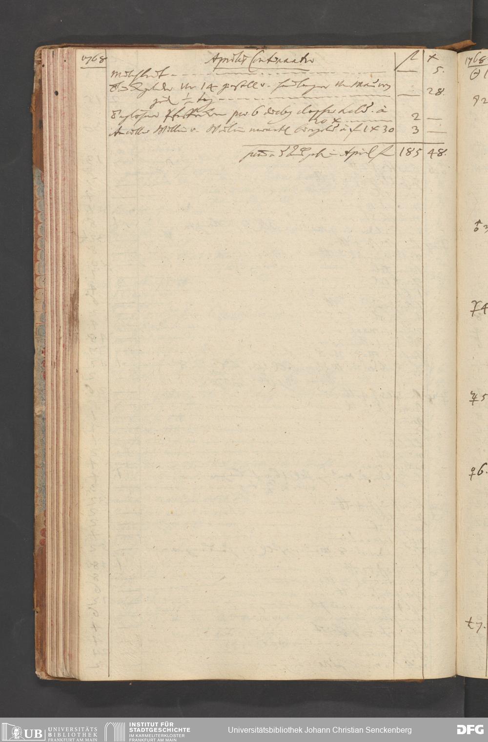 V48 Dr. Senckenbergische Stiftung, B51 - ... Haushaltsbücher von Johann Christian Senckenberg, Bd. 4