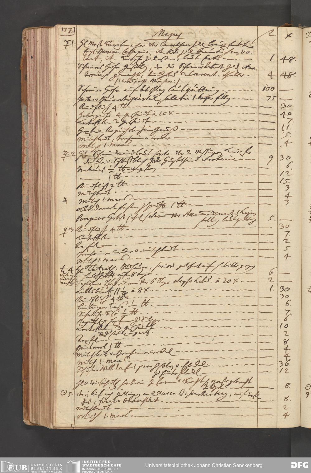 V48 Dr. Senckenbergische Stiftung, B51 - ... Haushaltsbücher von Johann Christian Senckenberg, Bd. 4