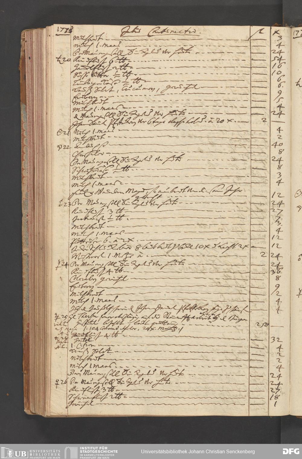 V48 Dr. Senckenbergische Stiftung, B51 - ... Haushaltsbücher von Johann Christian Senckenberg, Bd. 4
