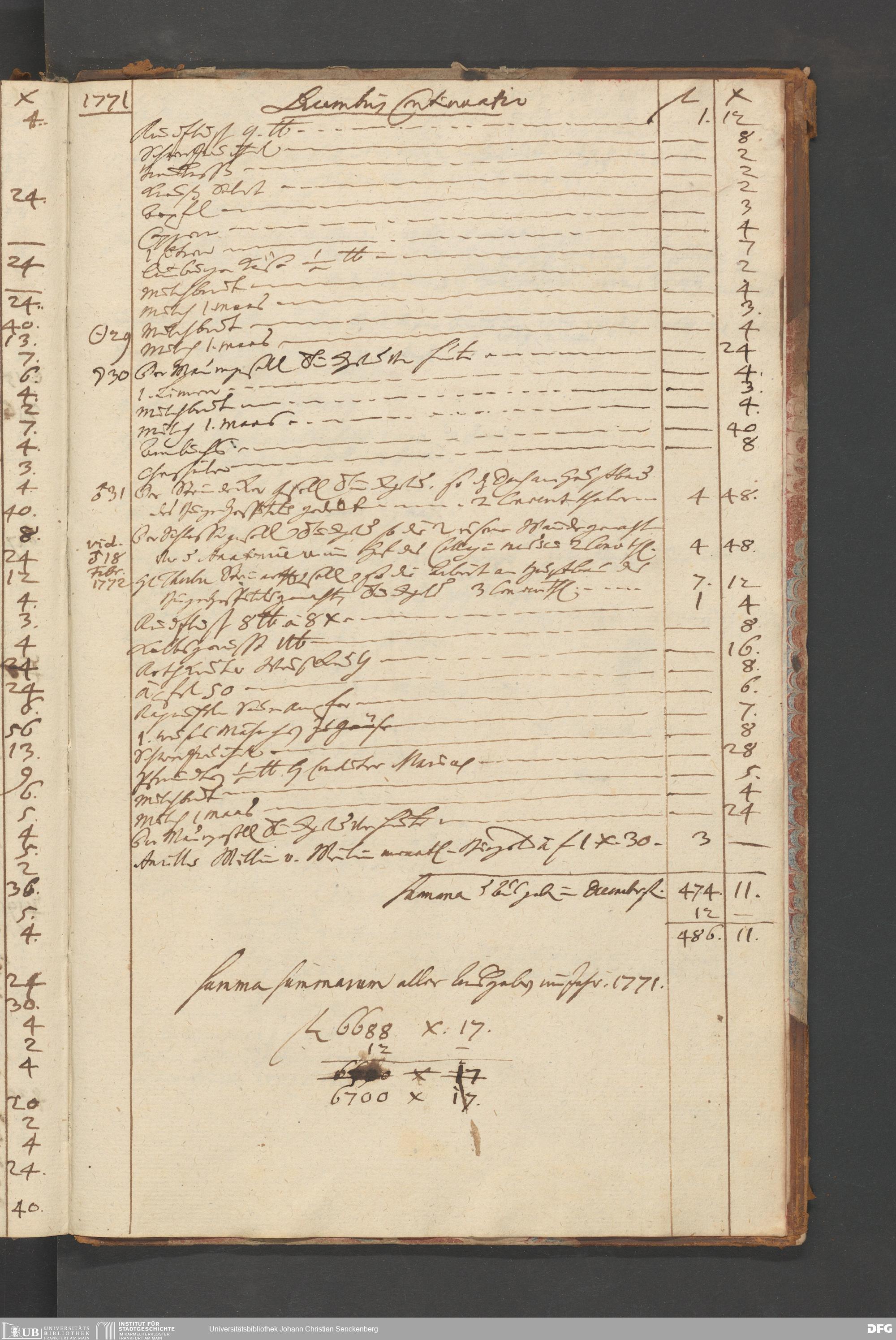 V48 Dr. Senckenbergische Stiftung, B51 - ... Haushaltsbücher von Johann Christian Senckenberg, Bd. 4