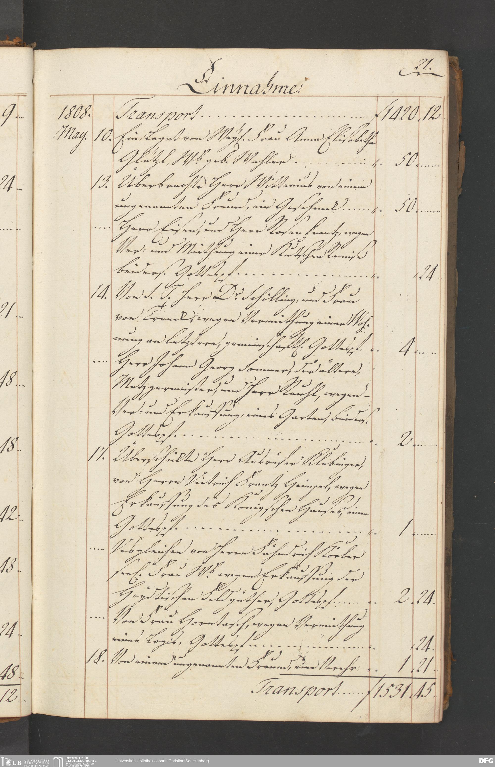 V48 Dr. Senckenbergische Stiftung, B54 - "Legaten, Verehrungen und Gottes-Pfennige-Buch vor das Burger- und Beisassen-Hospital"