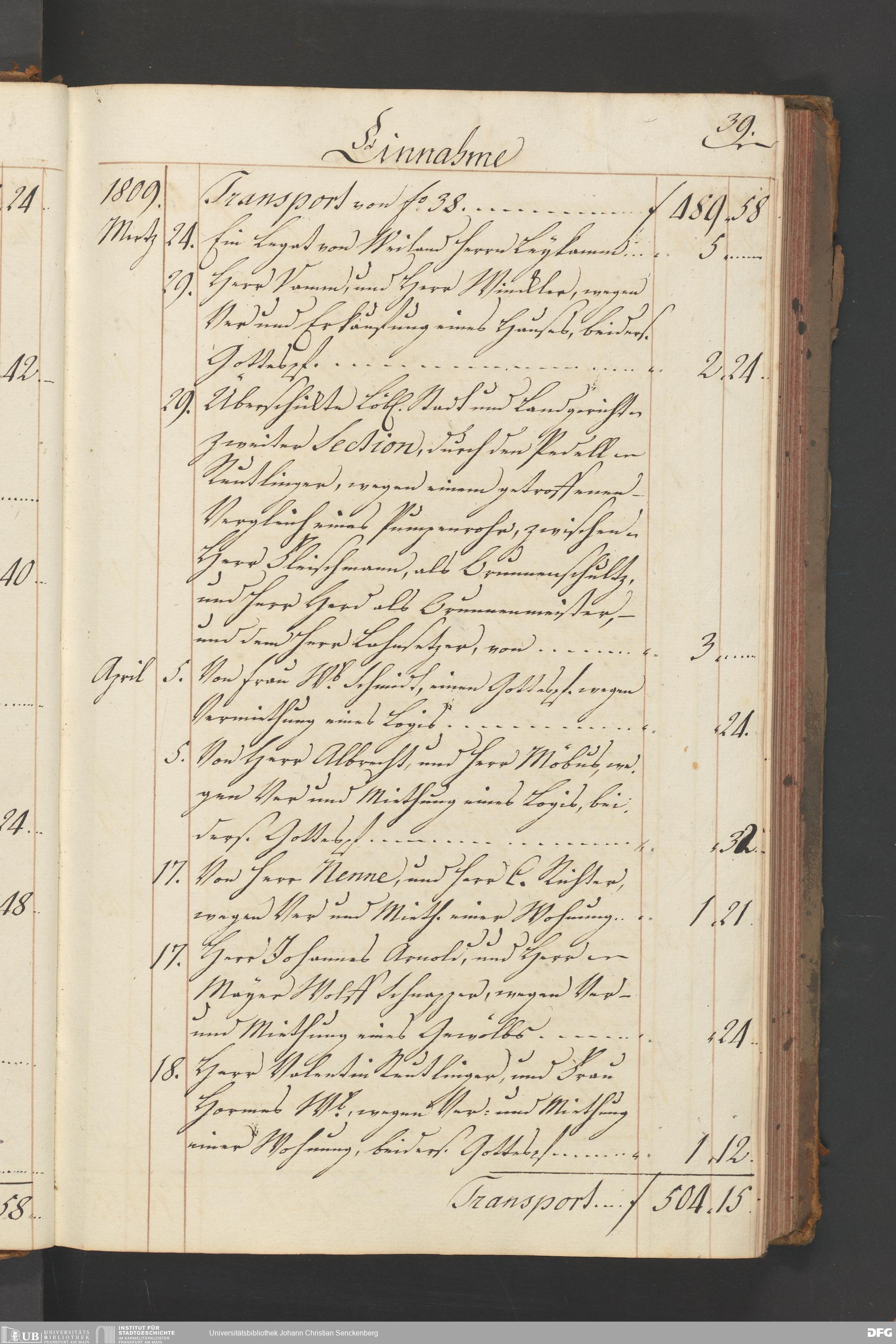 V48 Dr. Senckenbergische Stiftung, B54 - "Legaten, Verehrungen und Gottes-Pfennige-Buch vor das Burger- und Beisassen-Hospital"