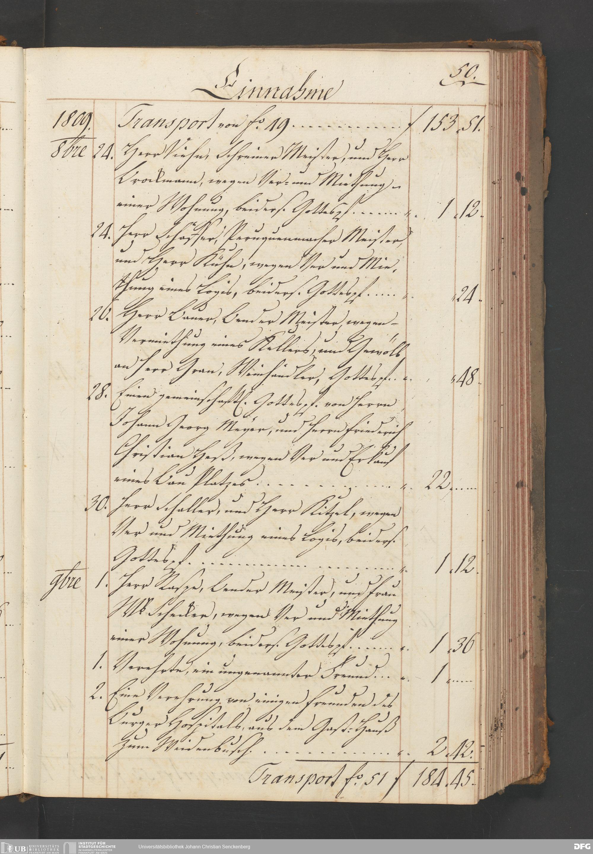 V48 Dr. Senckenbergische Stiftung, B54 - "Legaten, Verehrungen und Gottes-Pfennige-Buch vor das Burger- und Beisassen-Hospital"