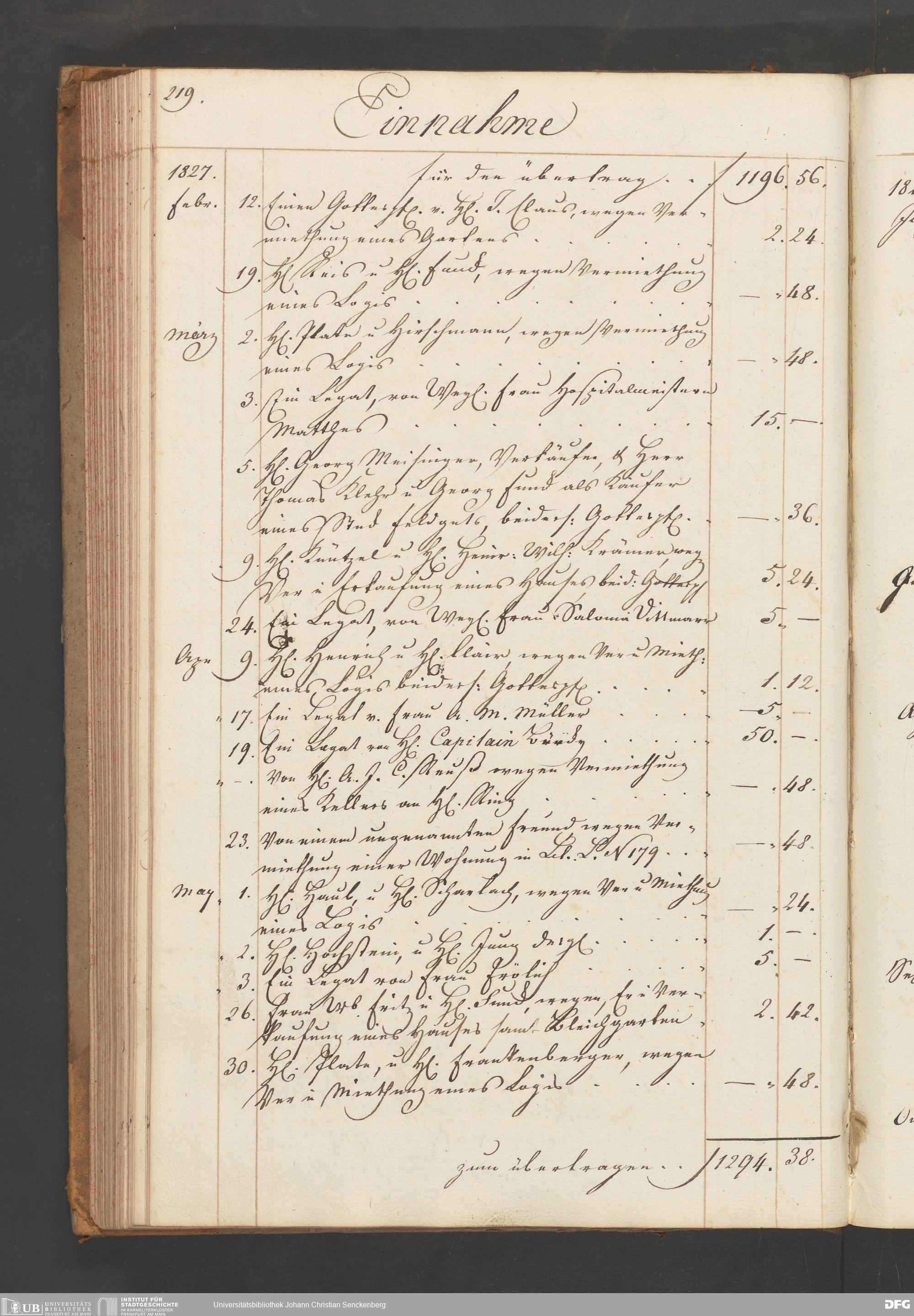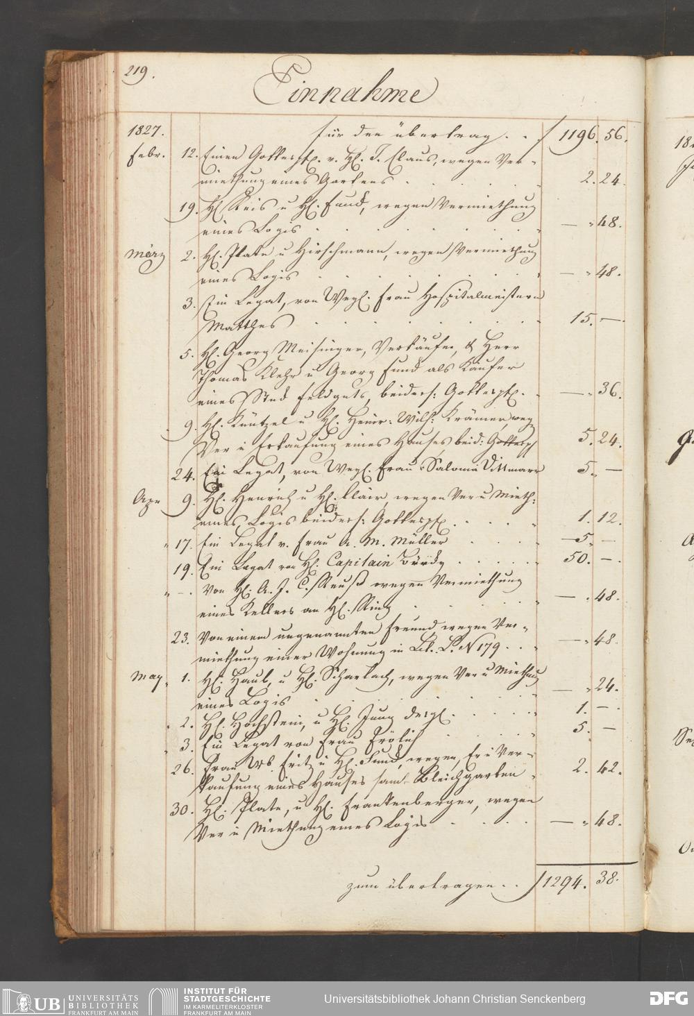V48 Dr. Senckenbergische Stiftung, B54 - "Legaten, Verehrungen und Gottes-Pfennige-Buch vor das Burger- und Beisassen-Hospital"