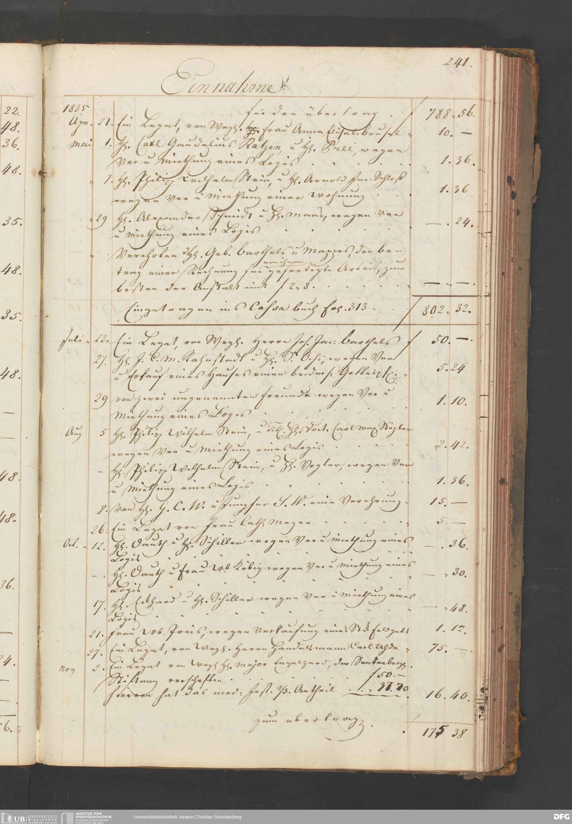 V48 Dr. Senckenbergische Stiftung, B54 - "Legaten, Verehrungen und Gottes-Pfennige-Buch vor das Burger- und Beisassen-Hospital"