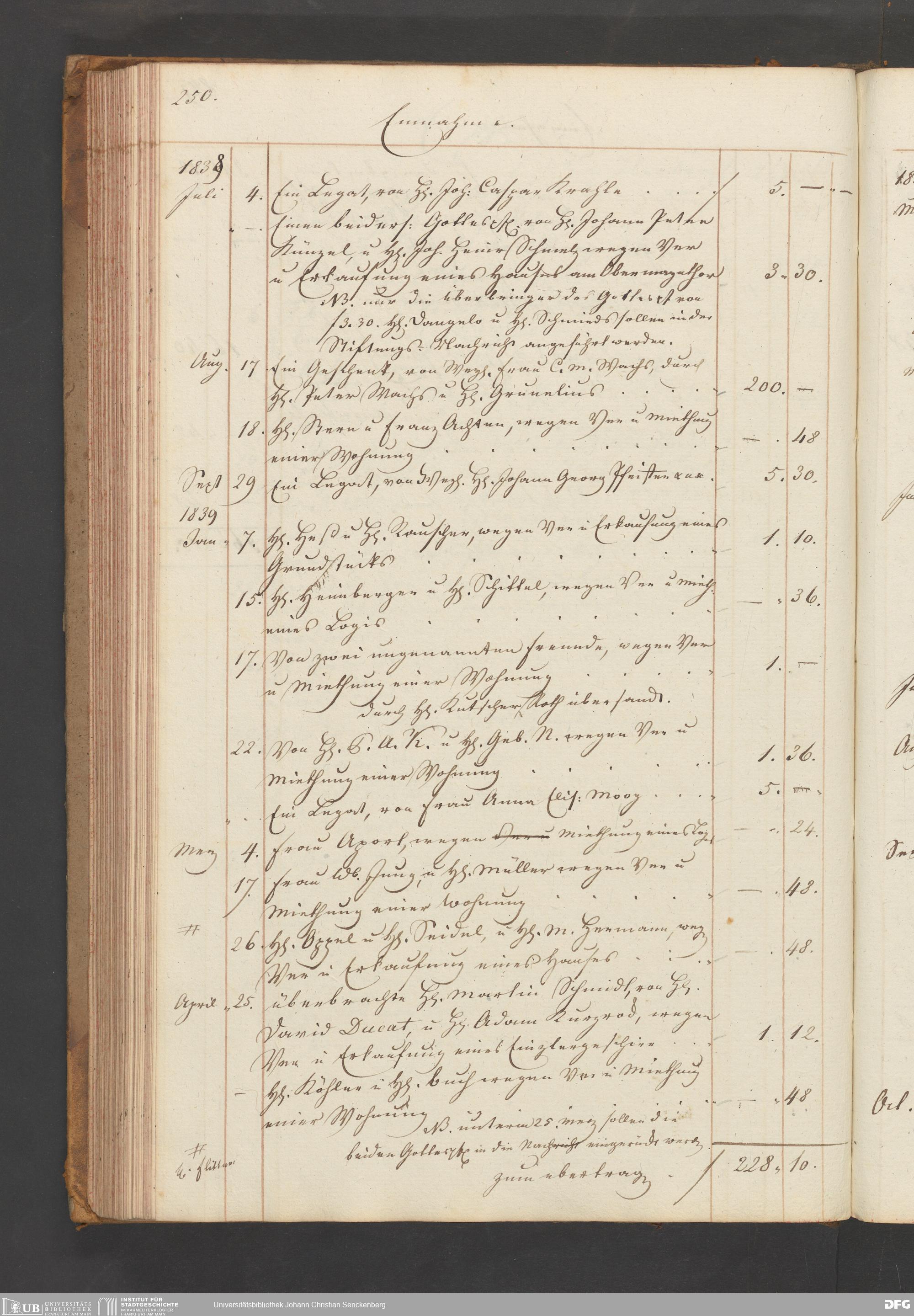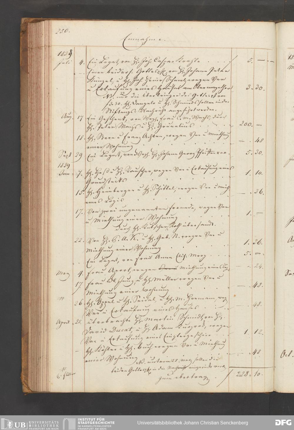 V48 Dr. Senckenbergische Stiftung, B54 - "Legaten, Verehrungen und Gottes-Pfennige-Buch vor das Burger- und Beisassen-Hospital"