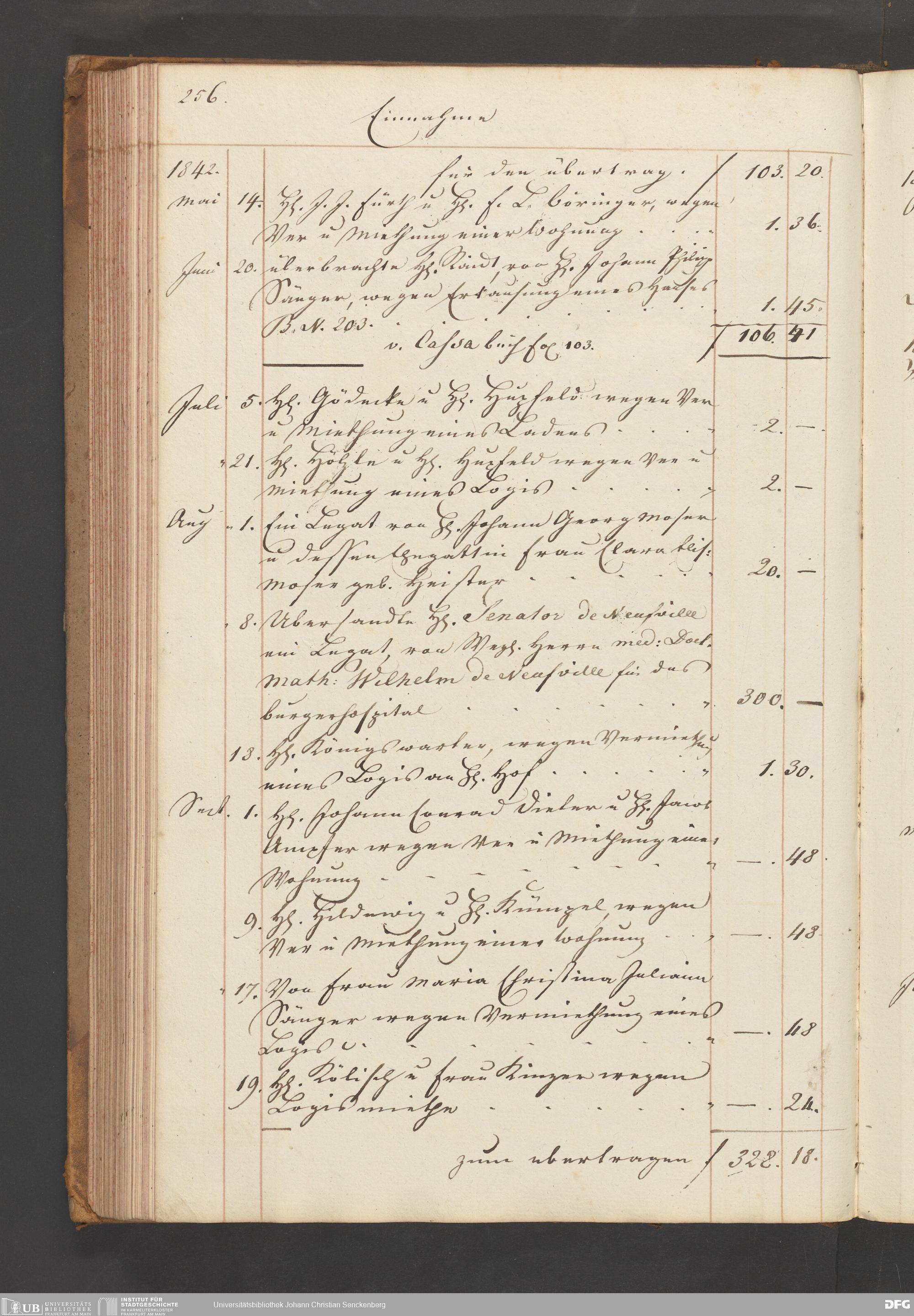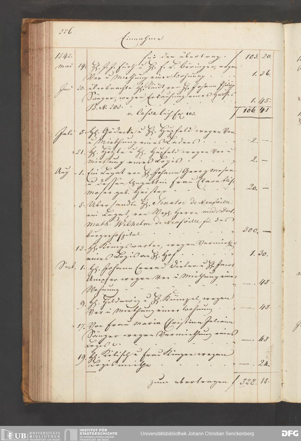 V48 Dr. Senckenbergische Stiftung, B54 - "Legaten, Verehrungen und Gottes-Pfennige-Buch vor das Burger- und Beisassen-Hospital"