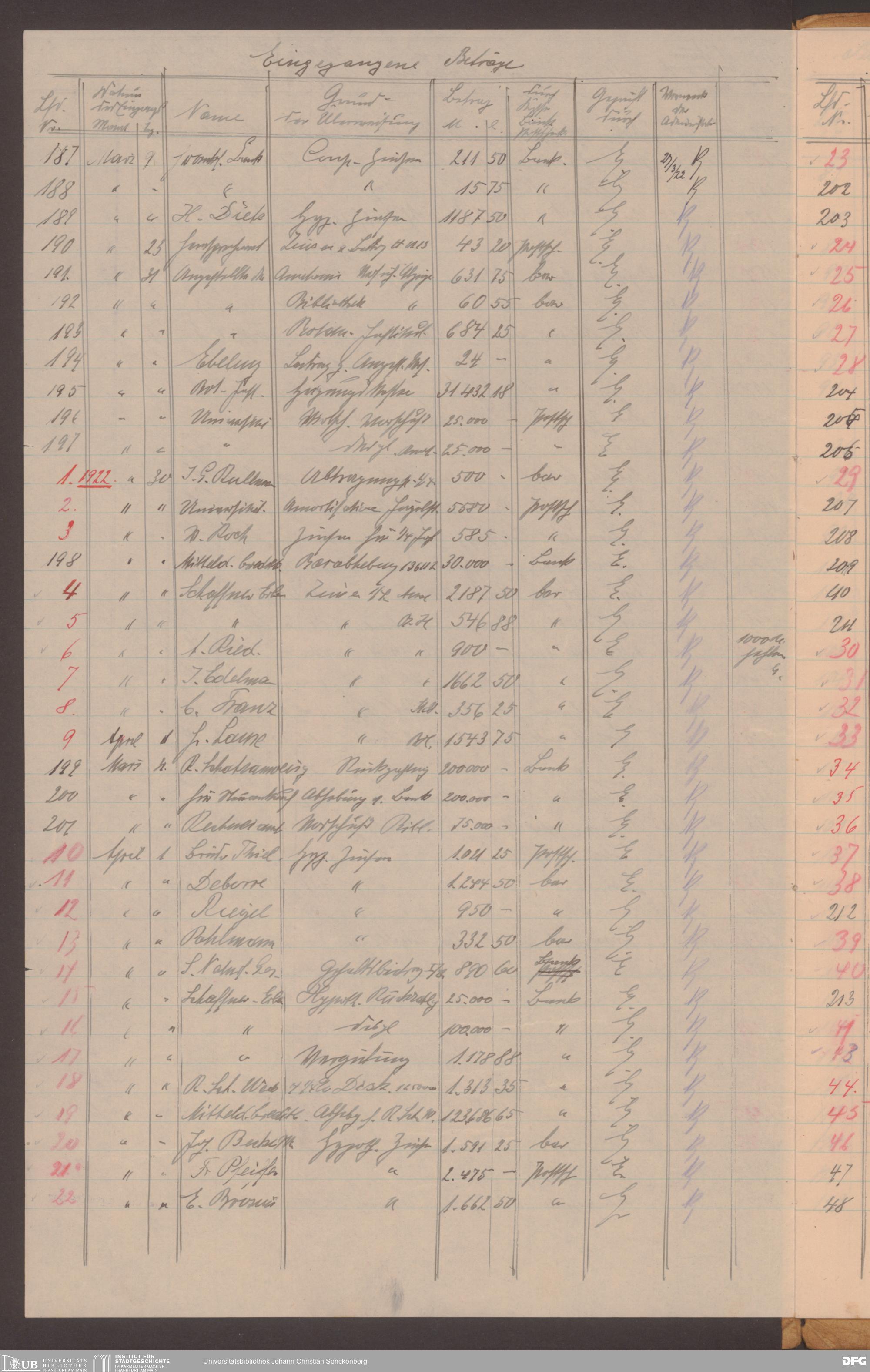 V48 Dr. Senckenbergische Stiftung, 555 - Belege über Einnahmen der Stiftung