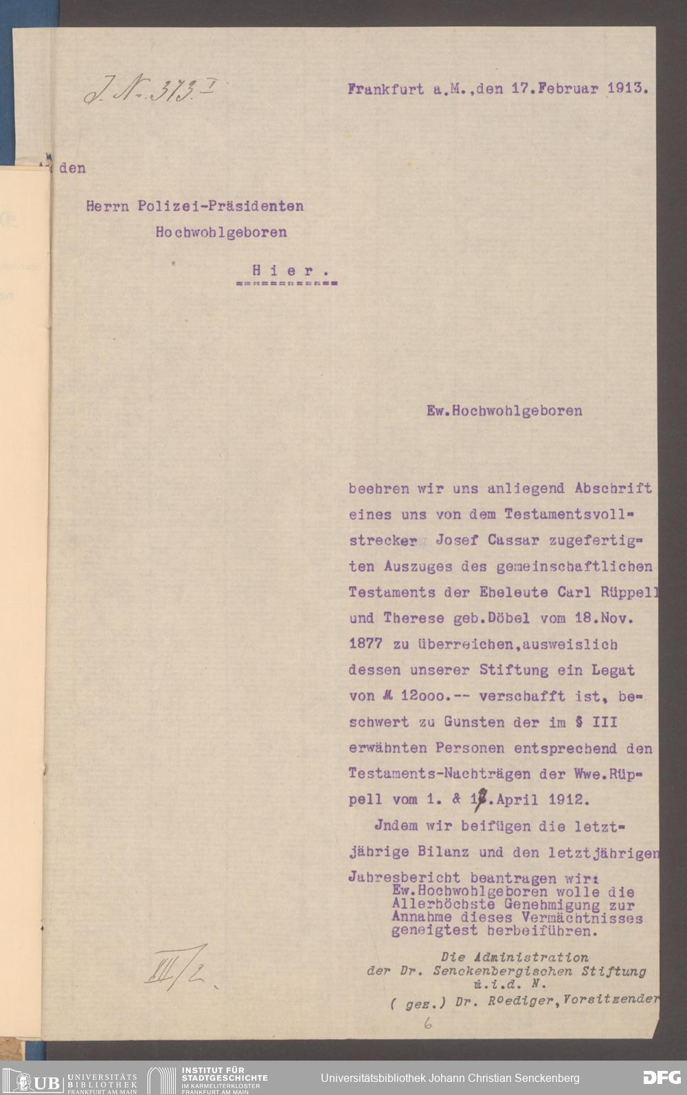 V48 Dr. Senckenbergische Stiftung, 563 - Legate