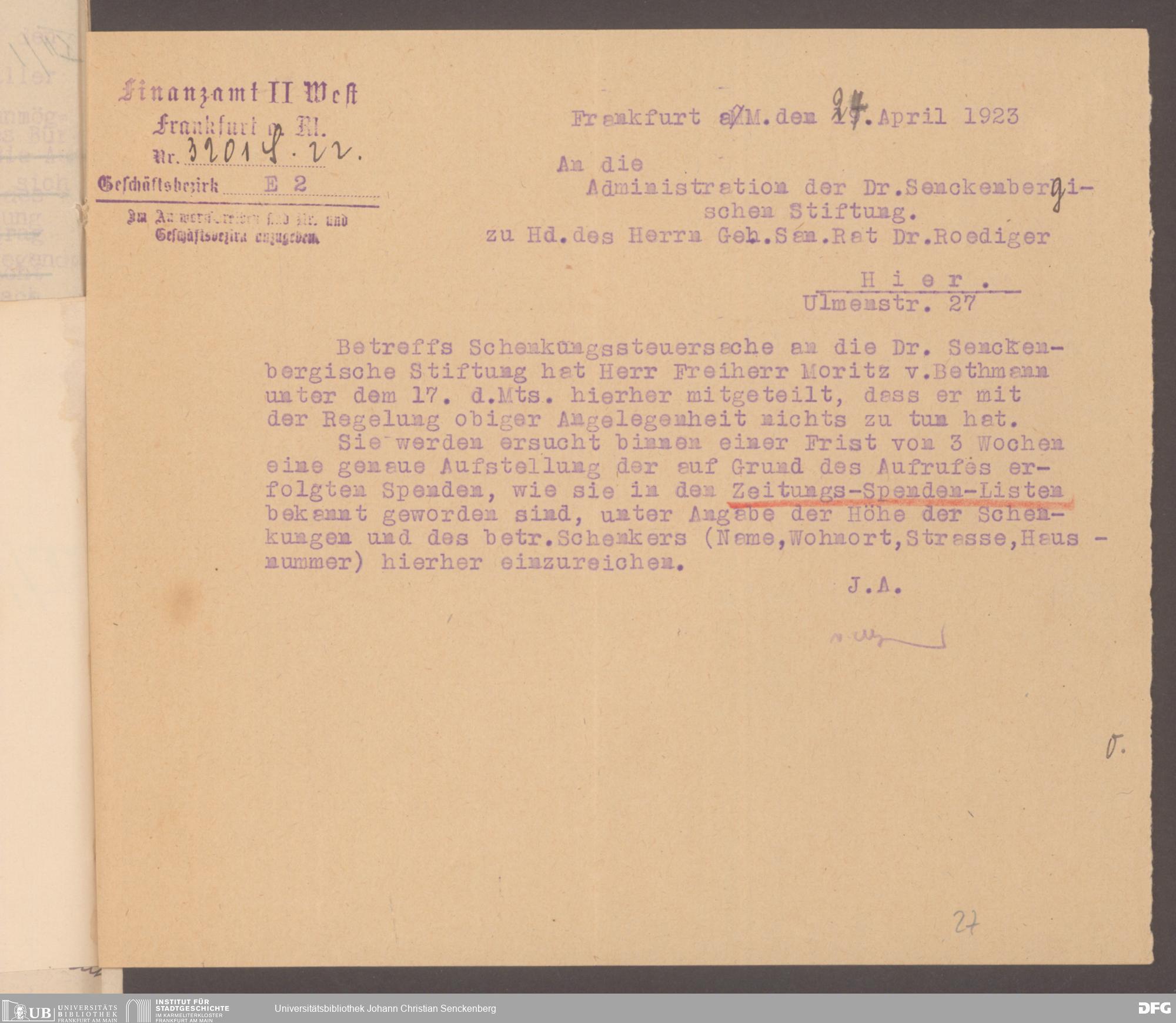 V48 Dr. Senckenbergische Stiftung, 563 - Legate