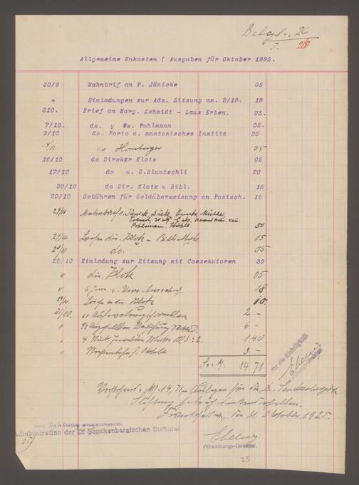 V48 Dr. Senckenbergische Stiftung, 569 - Belege über Ausgaben der Stiftung und Prüfung der Ausgaben durch Hospitalmeister Ebeling