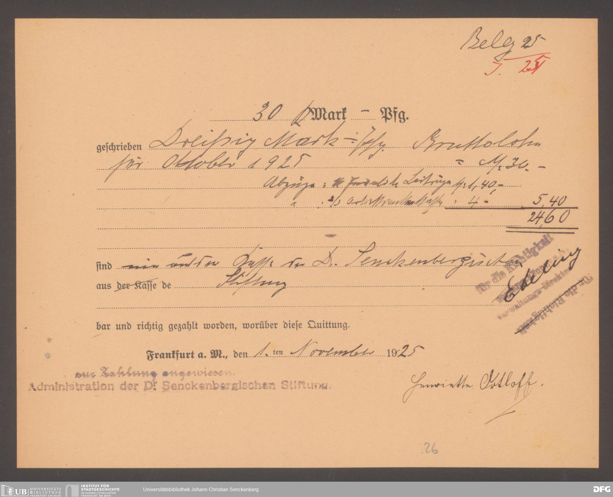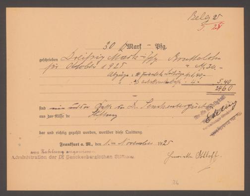 V48 Dr. Senckenbergische Stiftung, 569 - Belege über Ausgaben der Stiftung und Prüfung der Ausgaben durch Hospitalmeister Ebeling