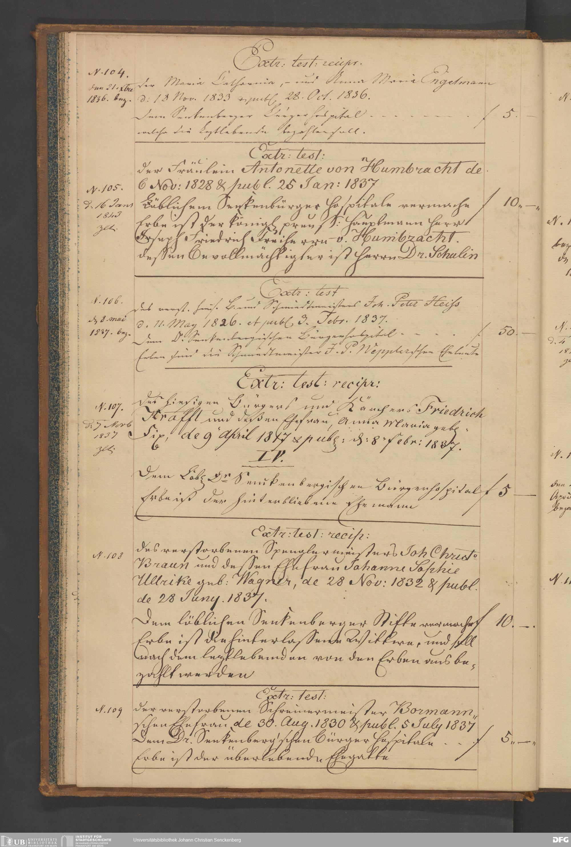 V48 Dr. Senckenbergische Stiftung, B56 - Legat-Buch der Dr. Senckenbergischen Stiftung