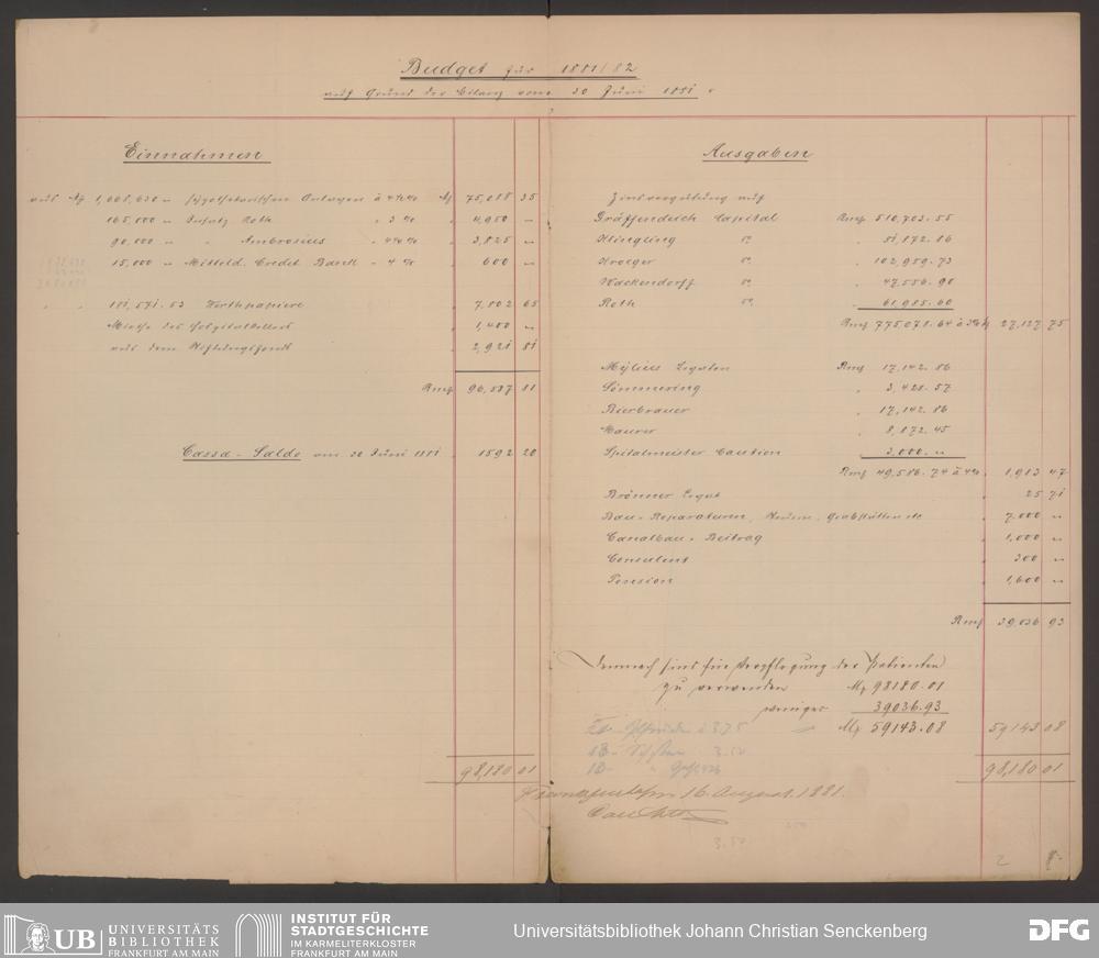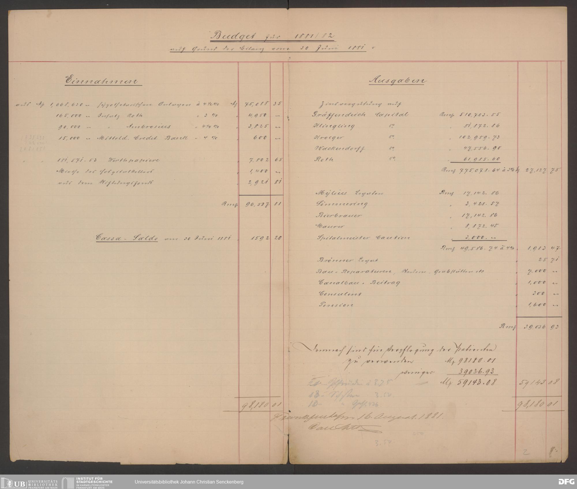 V48 Dr. Senckenbergische Stiftung, 570 - Etats und Bilanzen