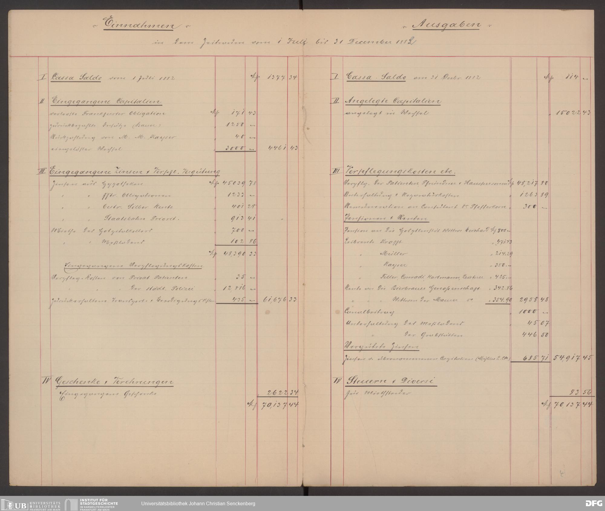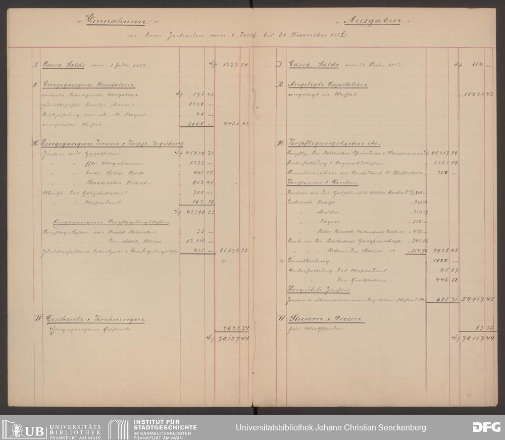 V48 Dr. Senckenbergische Stiftung, 570 - Etats und Bilanzen