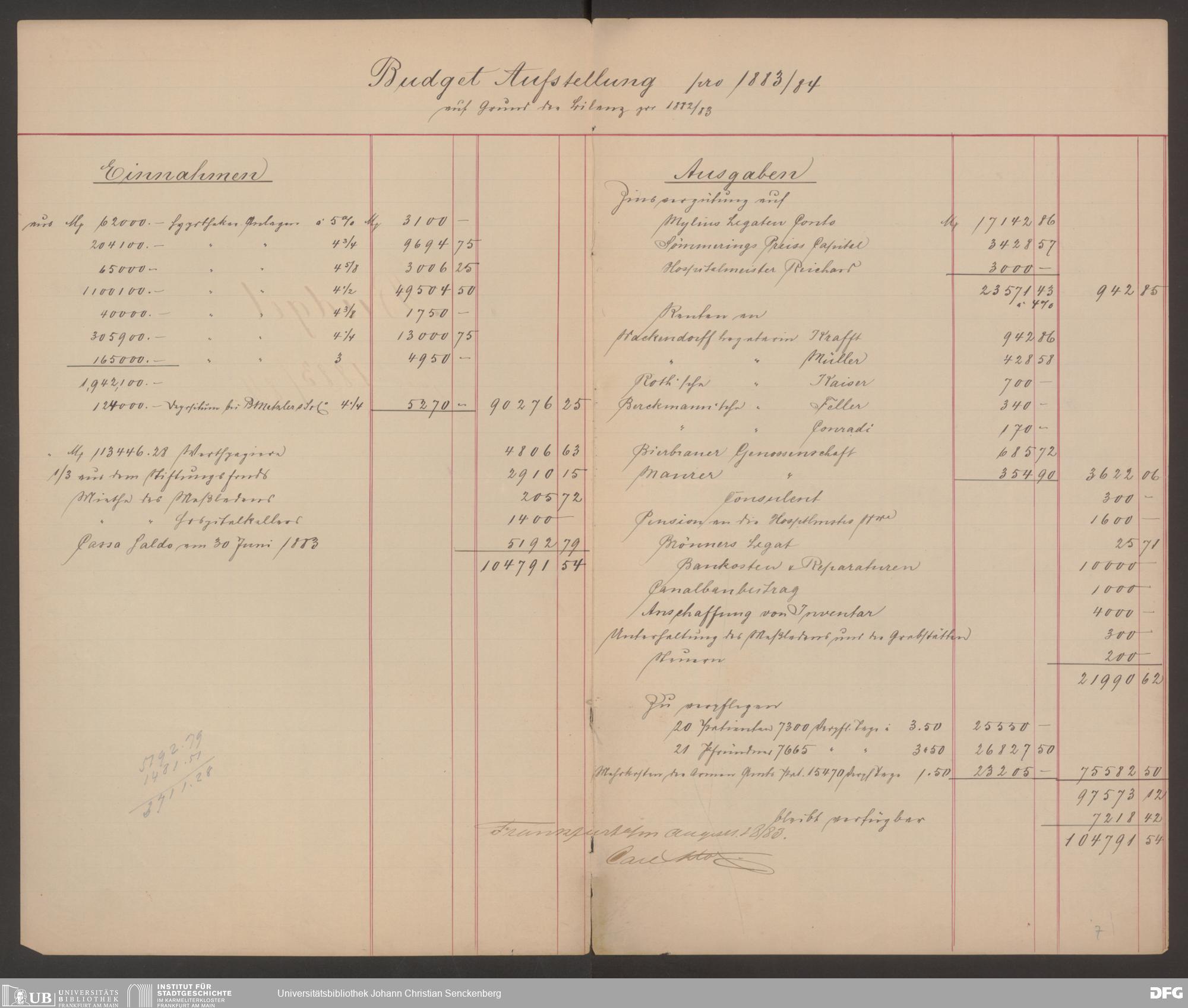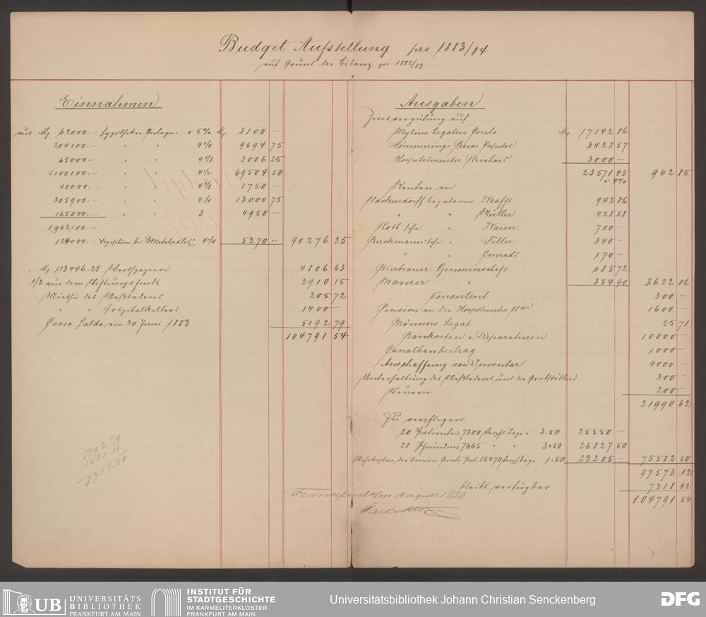 V48 Dr. Senckenbergische Stiftung, 570 - Etats und Bilanzen