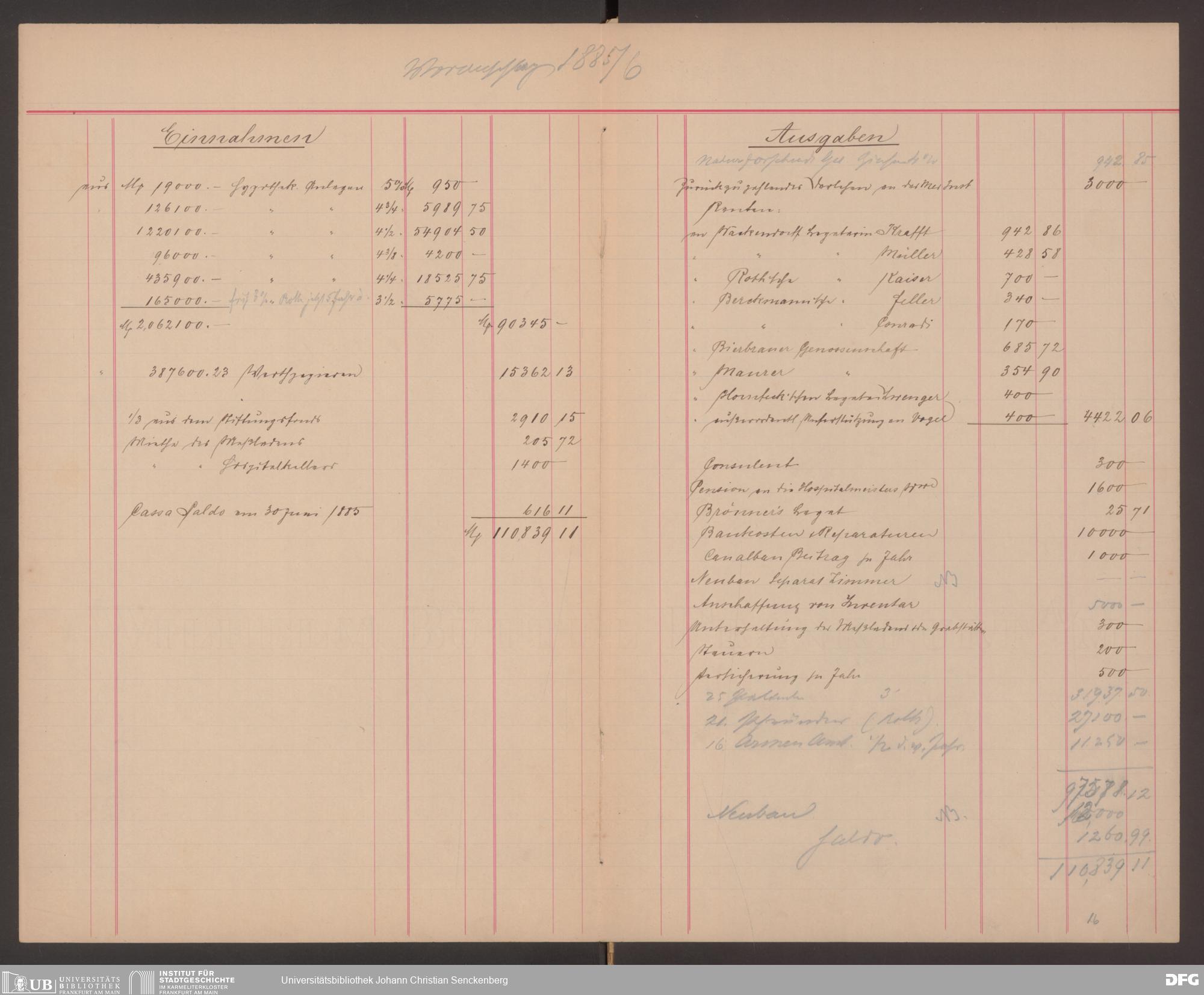 V48 Dr. Senckenbergische Stiftung, 570 - Etats und Bilanzen
