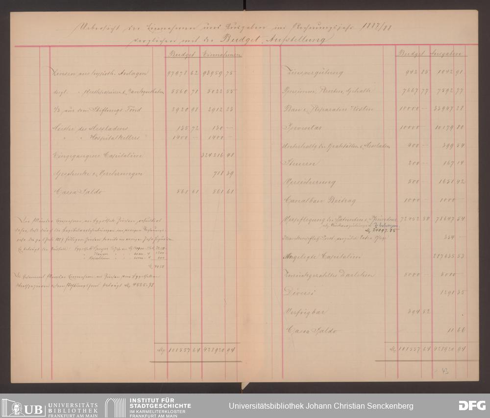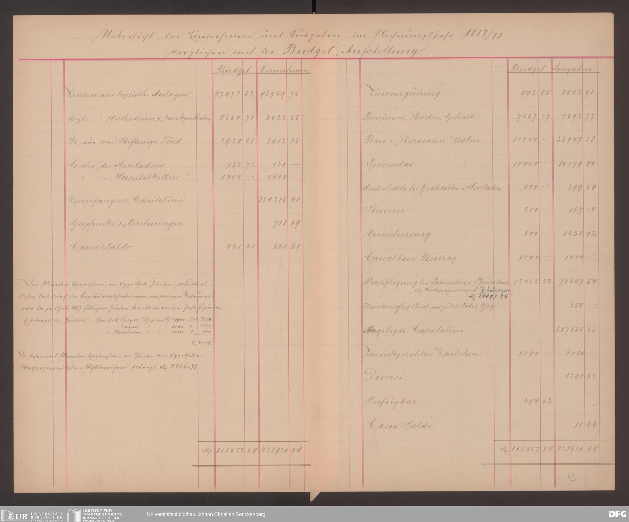 V48 Dr. Senckenbergische Stiftung, 570 - Etats und Bilanzen