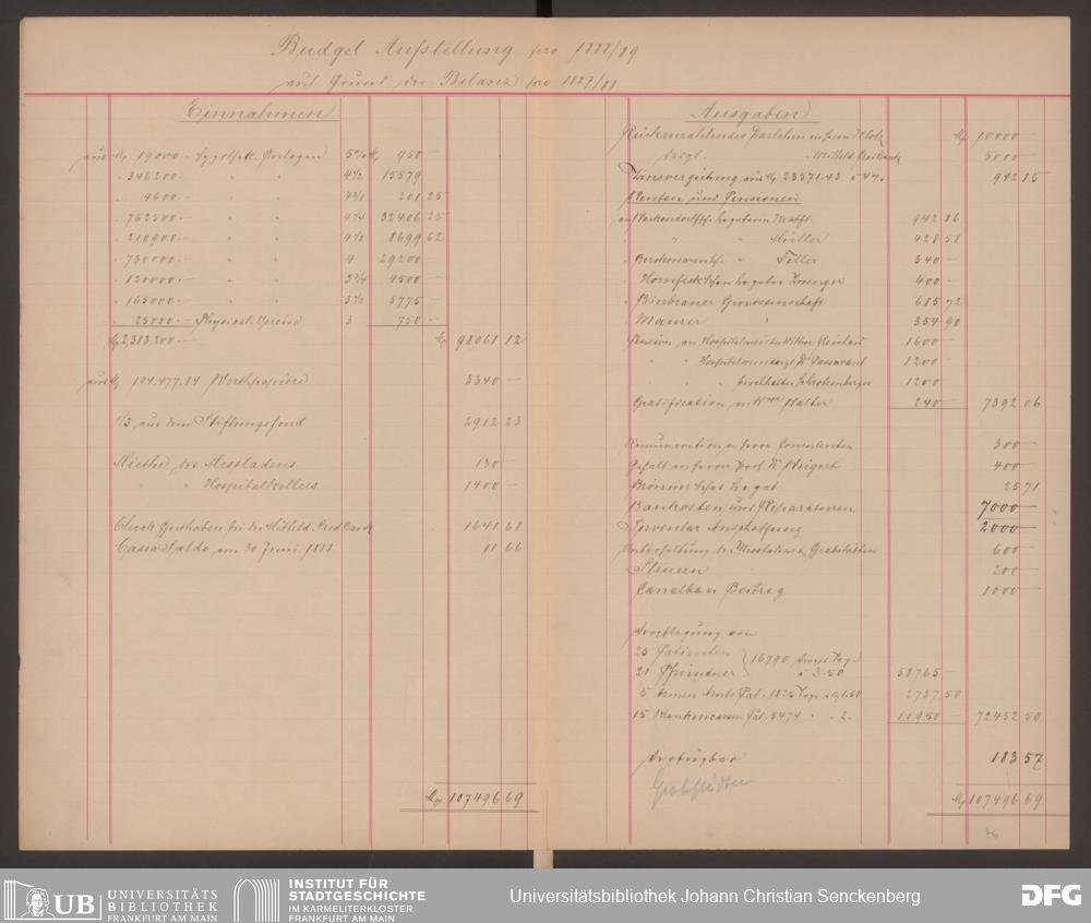 V48 Dr. Senckenbergische Stiftung, 570 - Etats und Bilanzen
