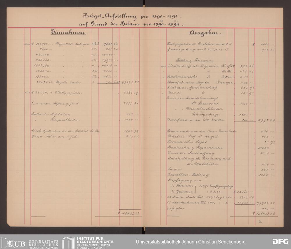 V48 Dr. Senckenbergische Stiftung, 570 - Etats und Bilanzen