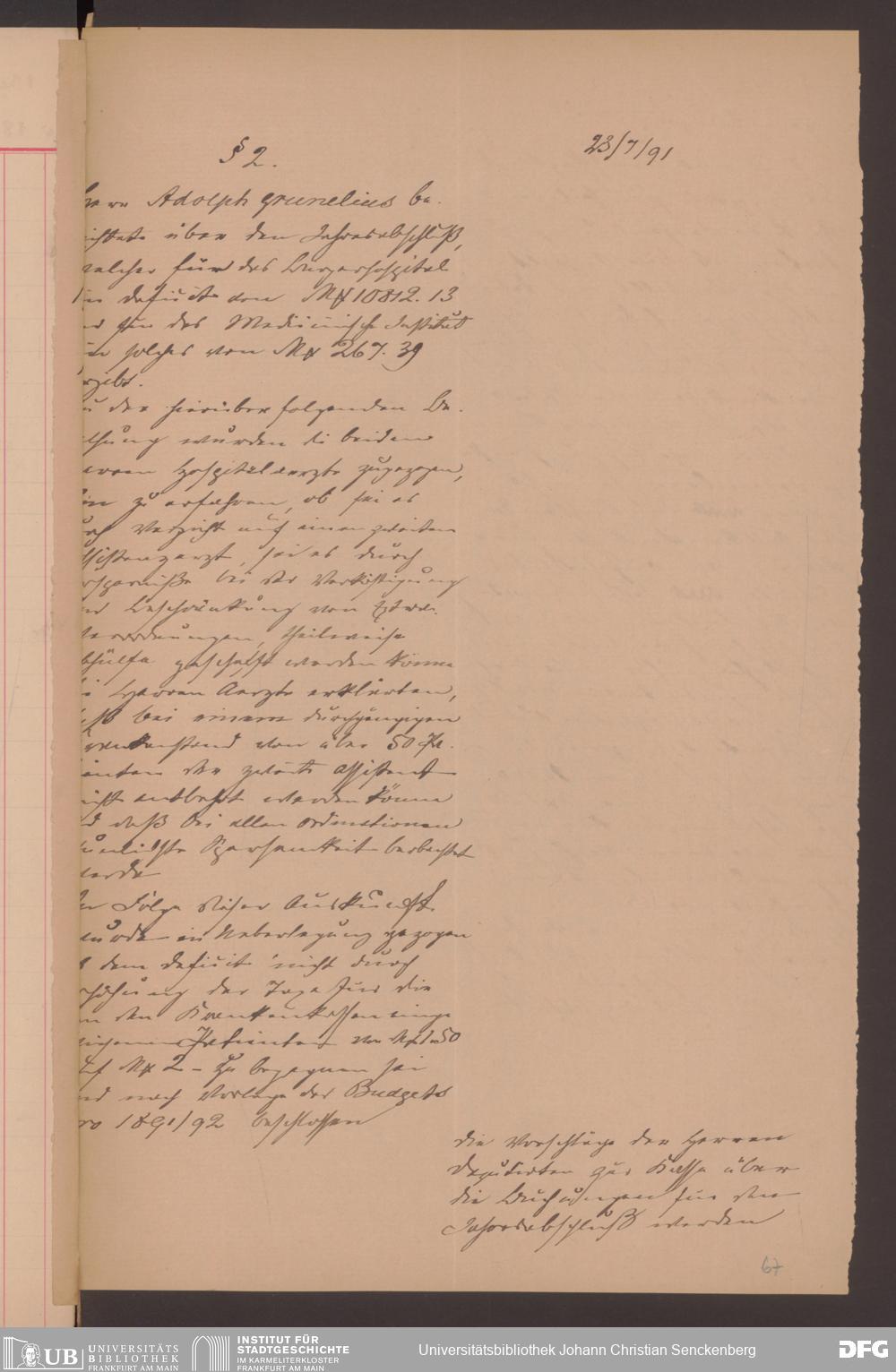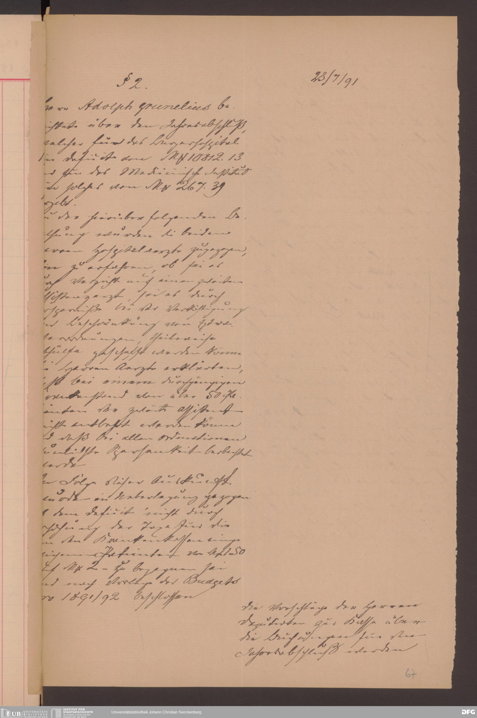 V48 Dr. Senckenbergische Stiftung, 570 - Etats und Bilanzen