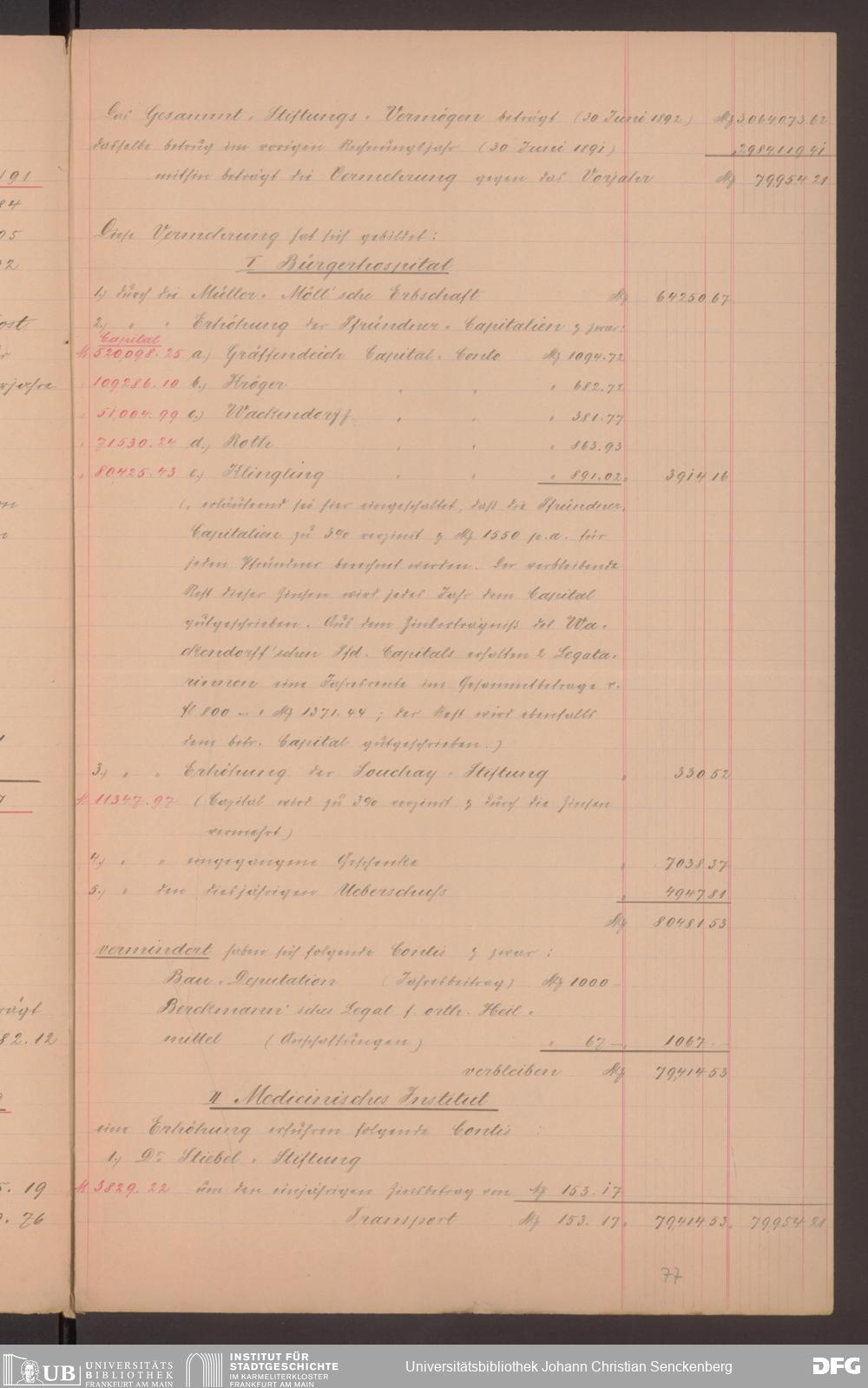V48 Dr. Senckenbergische Stiftung, 570 - Etats und Bilanzen
