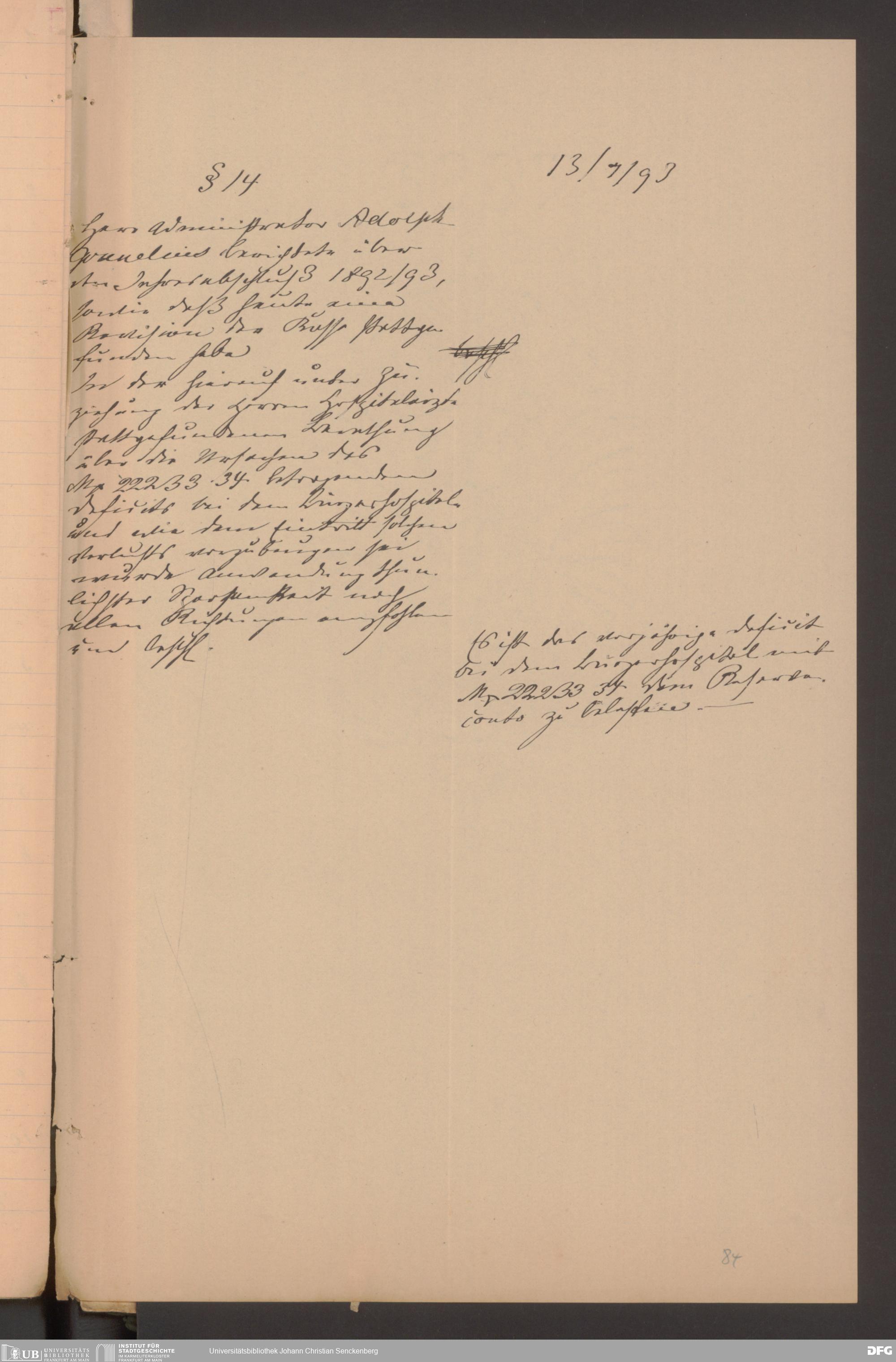 V48 Dr. Senckenbergische Stiftung, 570 - Etats und Bilanzen