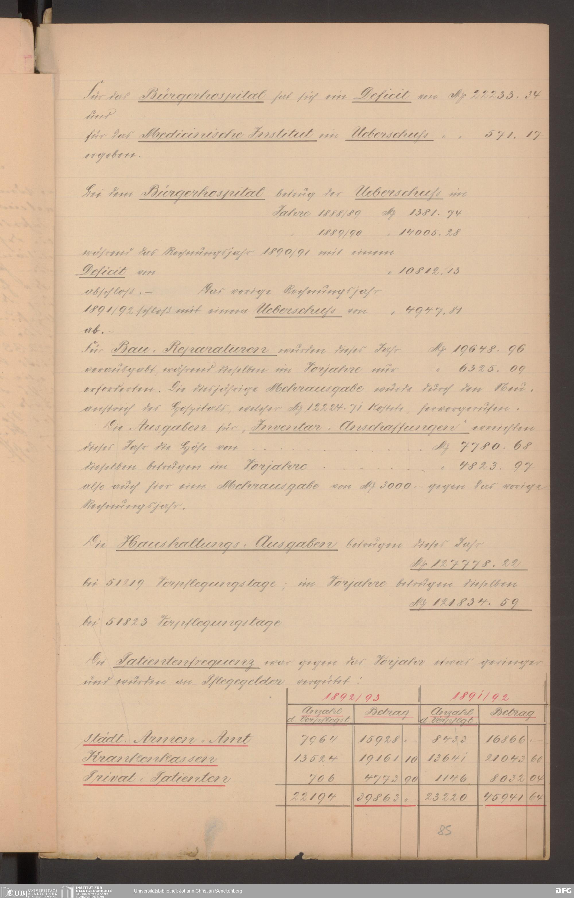 V48 Dr. Senckenbergische Stiftung, 570 - Etats und Bilanzen