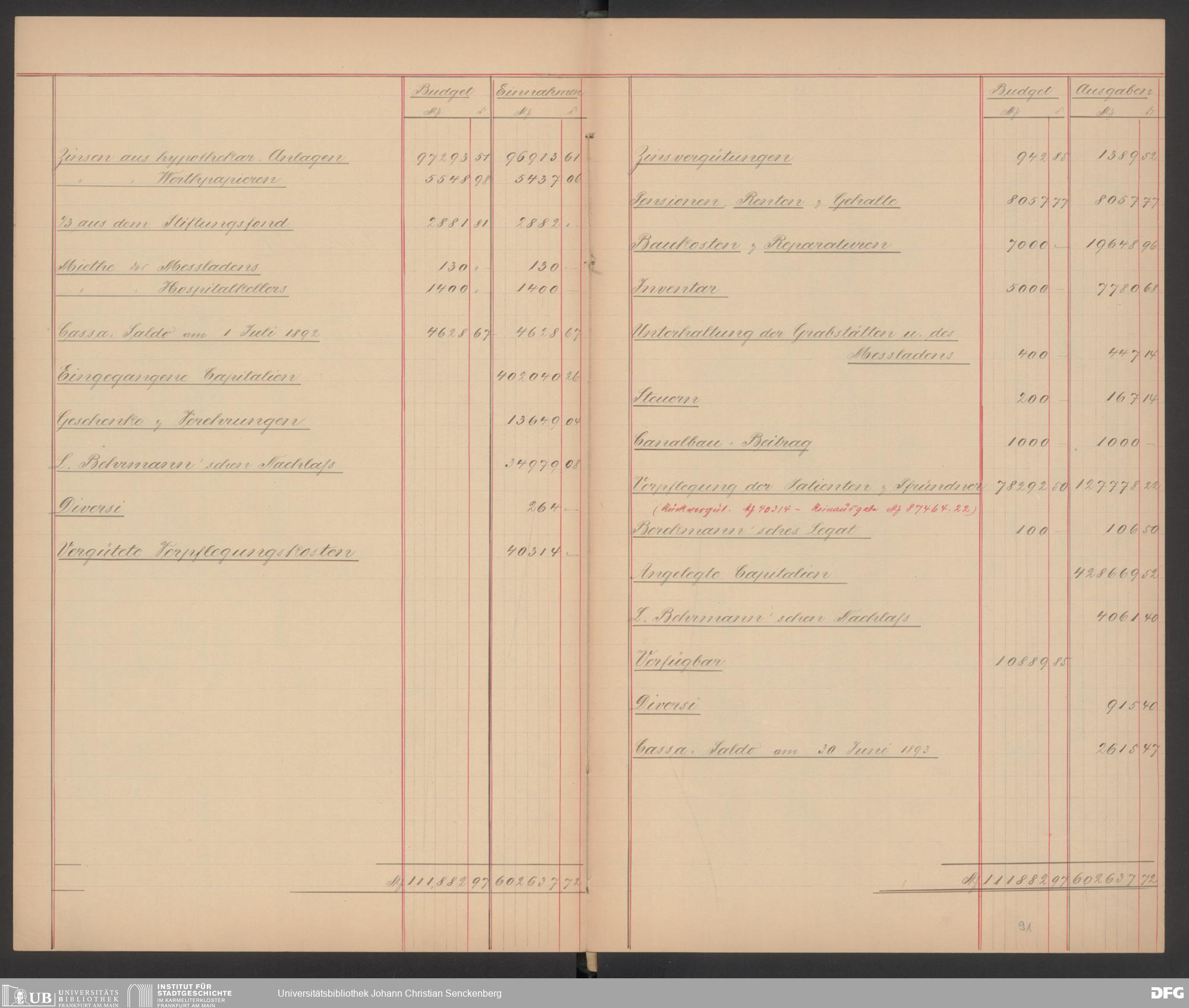 V48 Dr. Senckenbergische Stiftung, 570 - Etats und Bilanzen