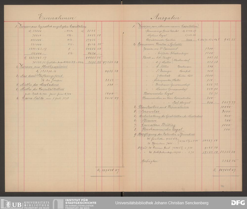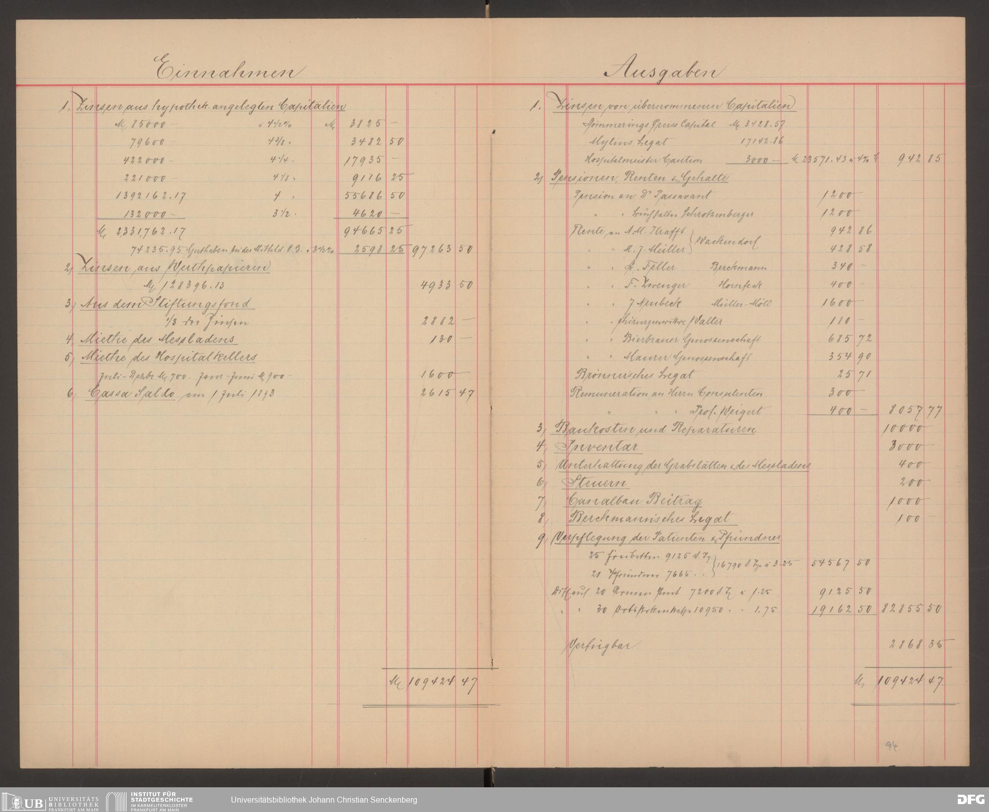 V48 Dr. Senckenbergische Stiftung, 570 - Etats und Bilanzen